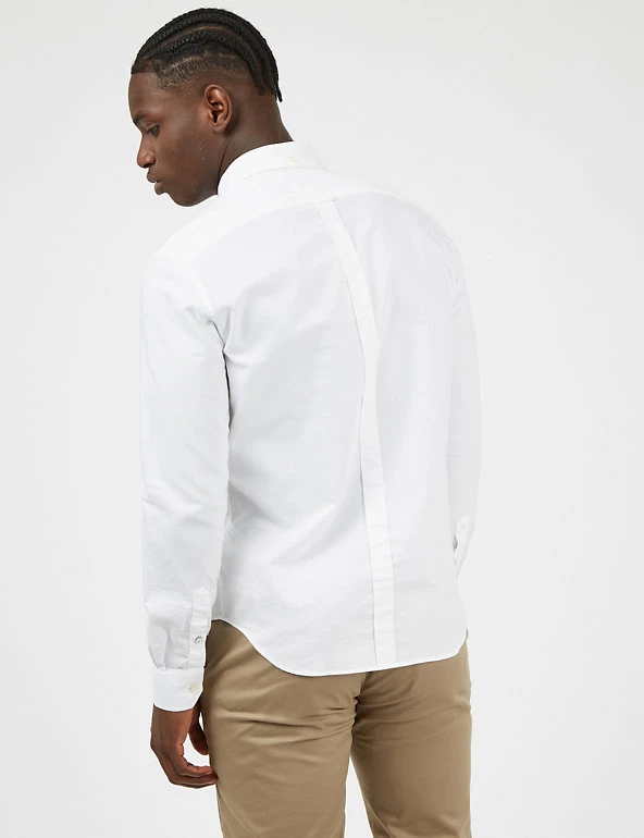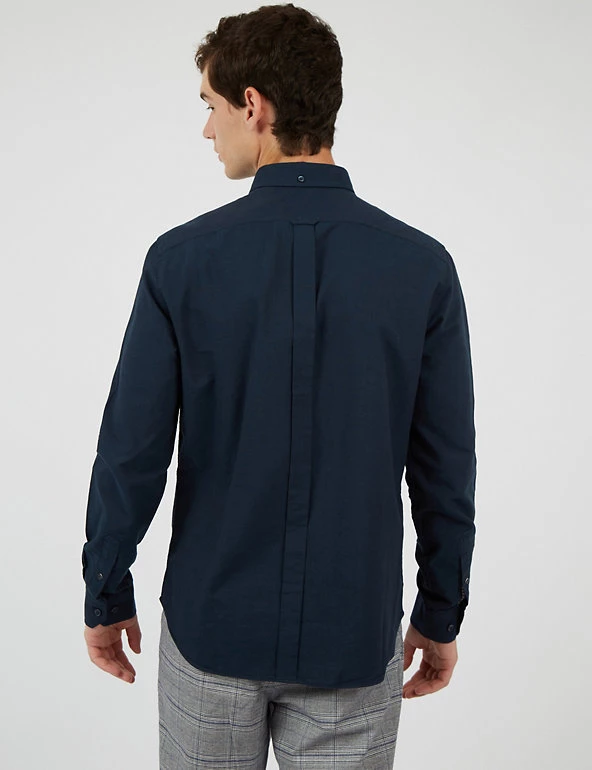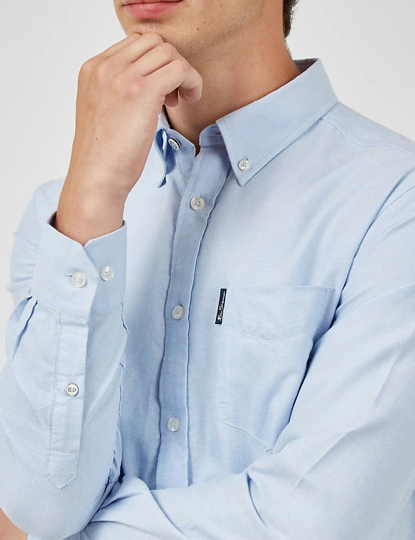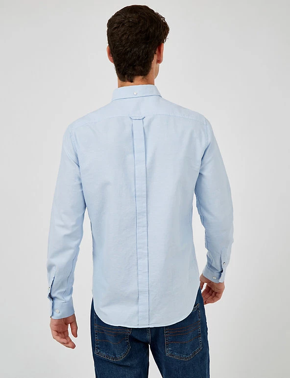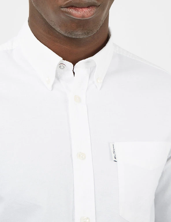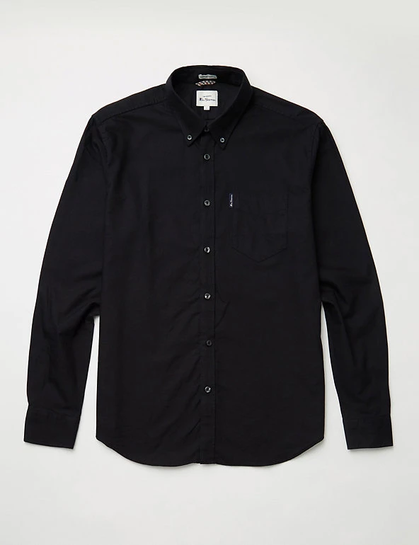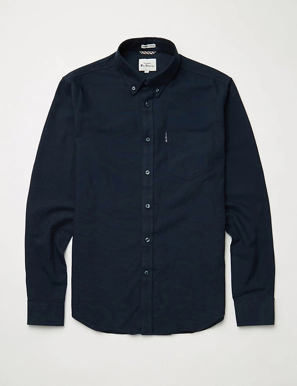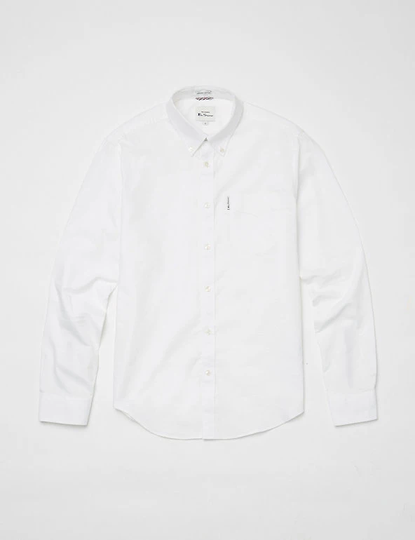 This crisp pure cotton shirt from Ben Sherman is a versatile staple that’s easy to dress up or down. It’s cut to a regular fit, with long sleeves and a smart two-finger button-down collar. A back box pleat gives this shirt a comfortable feel. The chest pocket is finished with branded tab detail. Made from organic cotton.