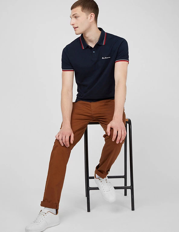 Crafted from pure organic cotton, this polo shirt from Ben Sherman is the ideal blend of comfort and iconic style. It’s cut in a comfortable regular fit, with a classic collar and two button placket. This versatile separate is detailed with signature mod tipping and an embroidered logo on the chest. Made with organic cotton.