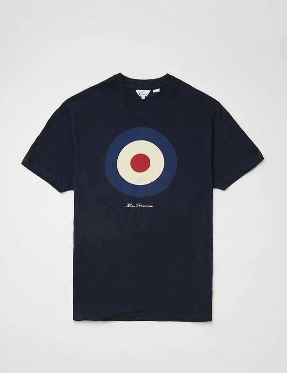 Bolster your wardrobe essentials with this classic t-shirt from Ben Sherman. Designed in a comfy regular fit, it’s made from pure organic cotton for a soft feel on the skin. The t-shirt is finished with a fuss-free crew neck and the brand’s signature target graphic on the front. Made with organic cotton.