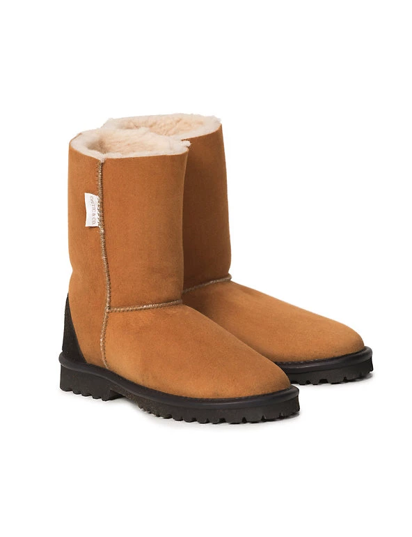 In an effortless pull-on style, these CELTIC & CO boots are ideal for adventures. They’re handcrafted from suede, with a cosy sheepskin lining and durable rubber soles. The boots are finished with exposed stitch detail and a branded tag.