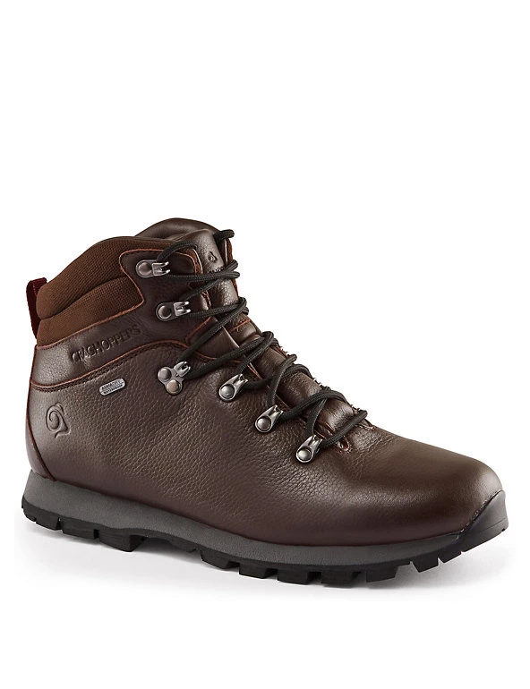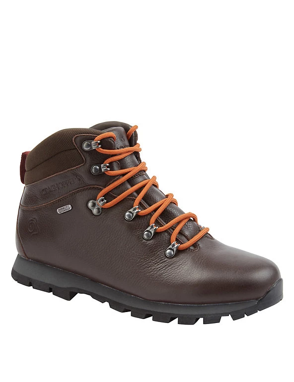 These leather boots from Craghoppers are perfect for your weekend treks. They feature a lace-up fastening with a padded ankle collar and tongue for comfort. The upper fabric is treated with NosiLife anti-insect technology to protect against bites, and the lightweight EVA footbeds mould to your feet for a snug fit. Durable Vibram soles provide superb grip and the Aquadry Membrane finish makes the boots both waterproof and breathable.
