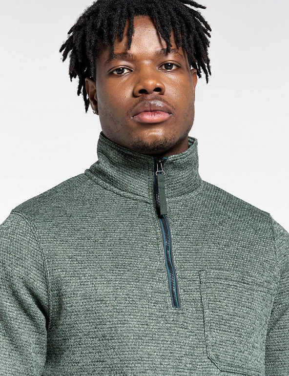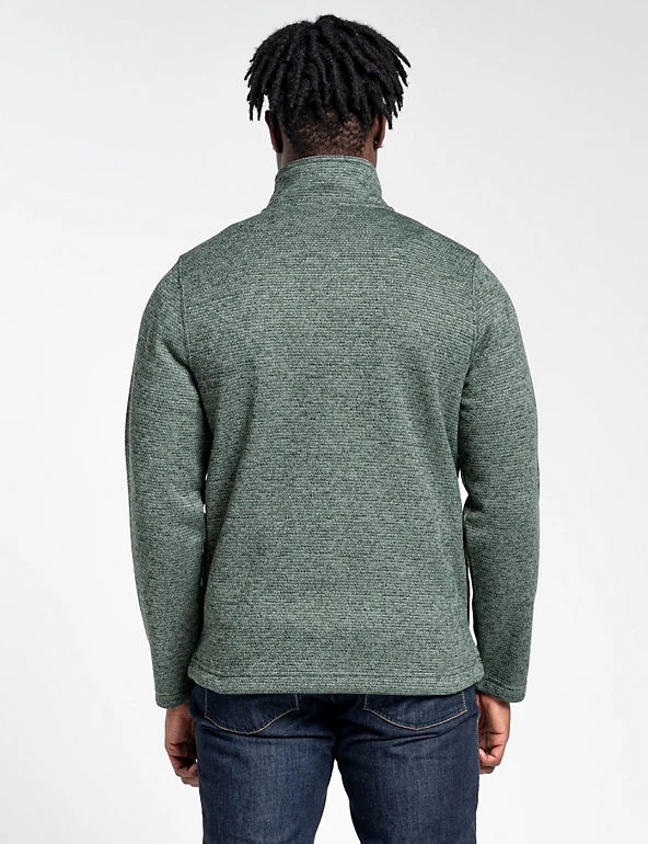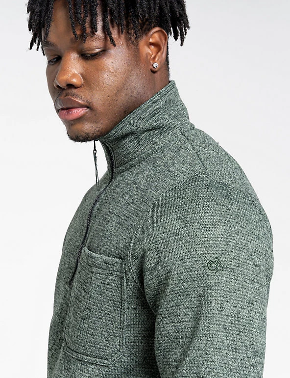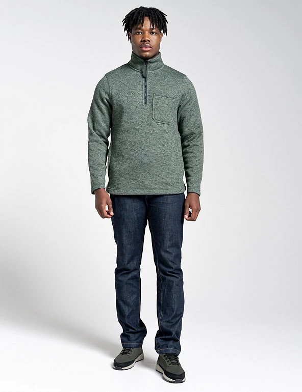 When the weather turns chilly, this fleece jacket from Craghoppers keeps you warm in style. Its relaxed fit gives plenty of room for underlayers, and the high funnel neckline has a half-zip fastening so you can adjust your warmth levels. A patch pocket on the chest adds a neat finishing detail. Made with recycled polyester.