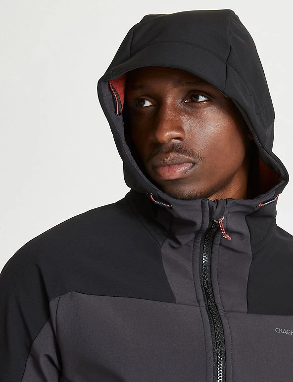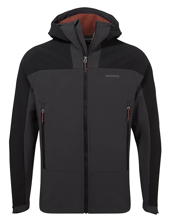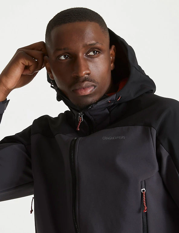 This utility jacket from Craghoppers is a comfortable style that still delivers on outdoor protection. It’s cut in a relaxed, 30″ fit for comfort, with a full hood and chin guard for warmth. Adjustable toggles and self-fabric cuff adjusters provide a changeable fit, along with an inner drawcord at the hem. Contrast panels and zip pockets add a stylish, sporty finish to this practical jacket, which has a full-length inner and outer zip for a secure fastening. Technical Ecoshield offers a naturally water-resistant, quick-dry coating, alongside the breathable AquaDry Membrane. Made with recycled polyester.