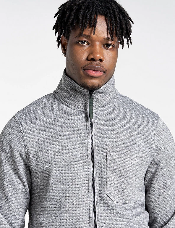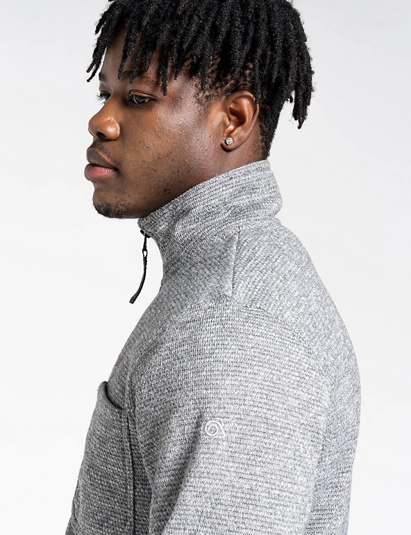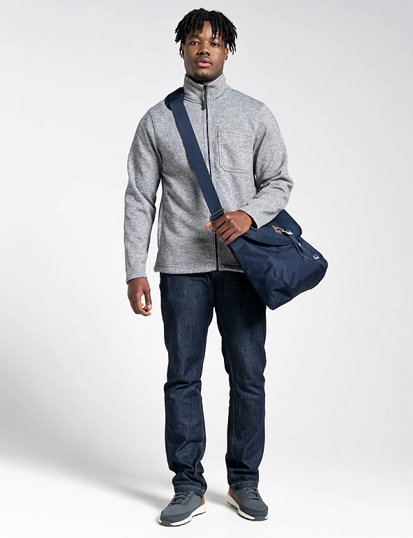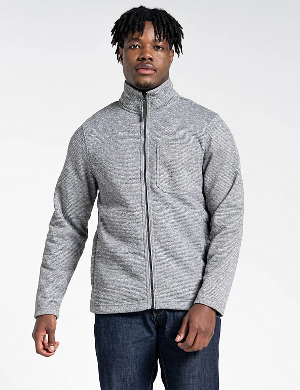 Add an easy extra layer on chilly days, with this zip-up fleece jacket from Craghoppers. It’s made in a generous relaxed fit, with a funnel neckline to give extra insulation. A patch pocket on the chest adds a touch of utility cool. Made with recycled polyester.