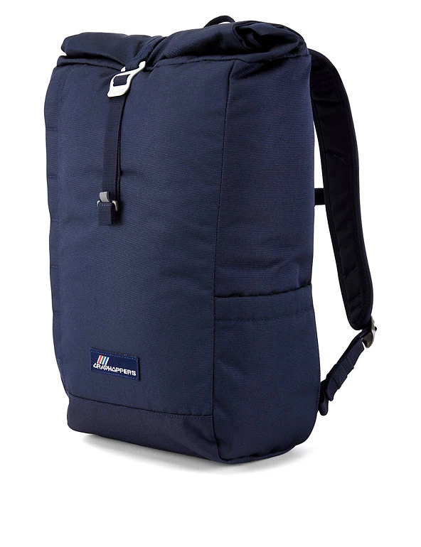 This rolltop backpack from Craghoppers provides easy on-the-go access. The main compartment can hold up to 20L and features a padded compartment for your laptop or tablet. Side and internal pockets provide extra space and are finished with recycled zip tape. The adjustable shoulder straps and back panel are padded for comfort, and you can adjust the sternum strap for a secure fit. From the café strap and clip fastening to the gear loops and reflective detailing, this bag has been designed for all locations. The water-repellent EcoShield finish keeps your belongings safe whatever the weather. Made from recycled polyester.