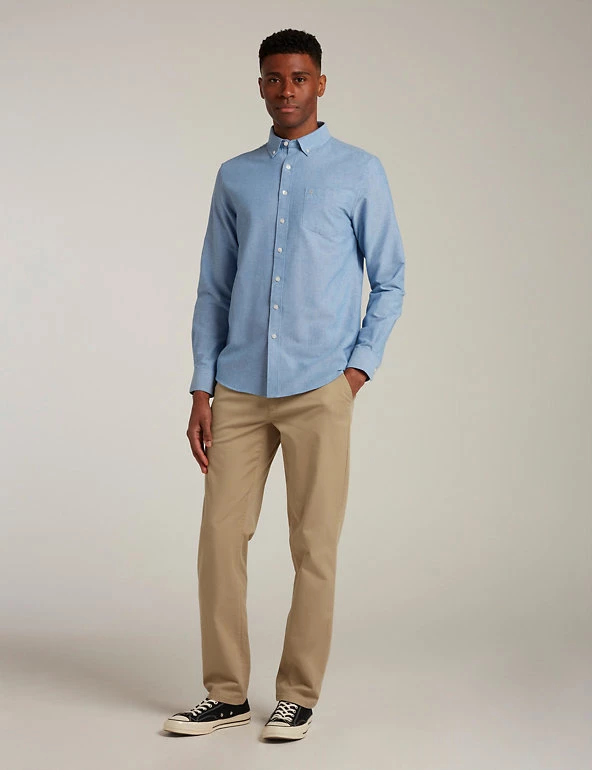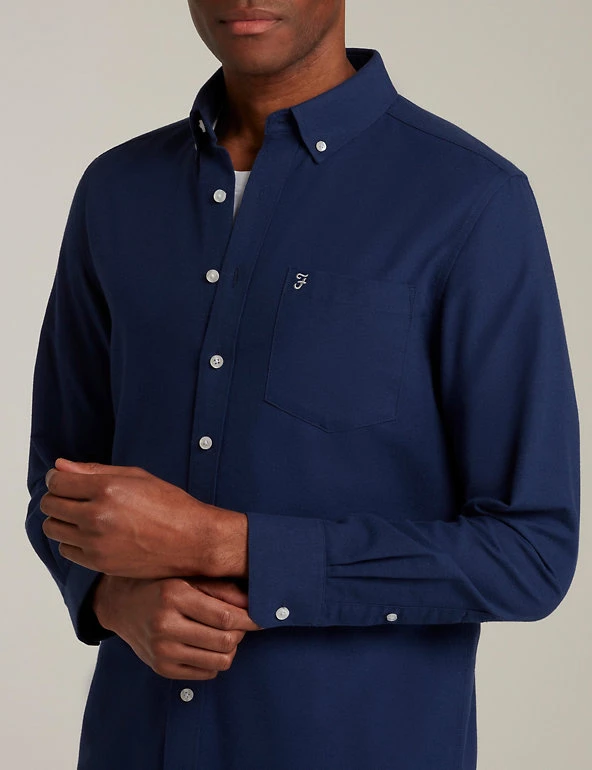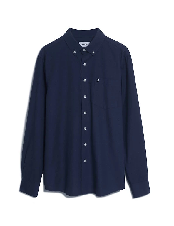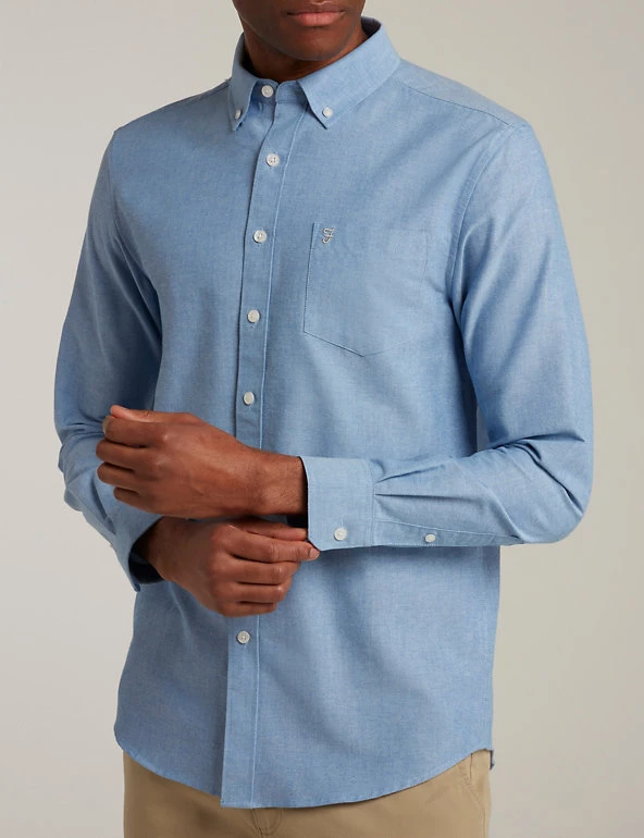 Embrace smart-casual style with this cotton-blend Oxford shirt from Farah. This comfortable design is cut to a regular fit and has a smart button-down collar and fastenings. An embroidered logo on the patch pocket adds extra attention to detail.