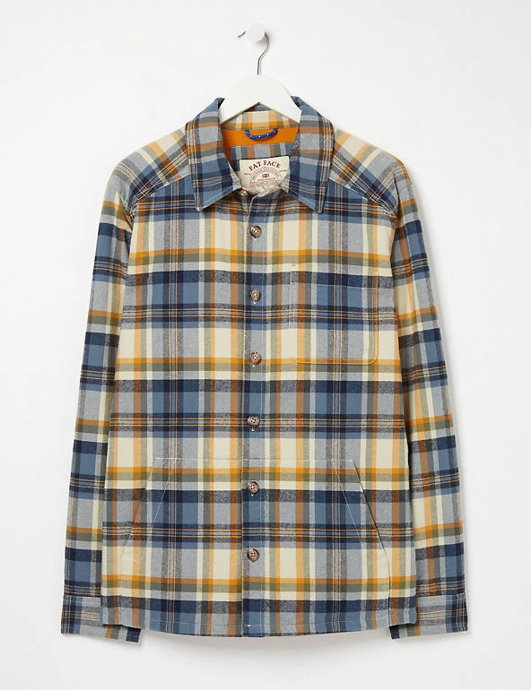 Master smart-casual style with this pure cotton overshirt from FatFace. It’s cut to an easy regular fit, with a classic collar and tortoiseshell button fastenings. This versatile check style has matching patch pockets and kangaroo pockets to give it an off-duty feel.