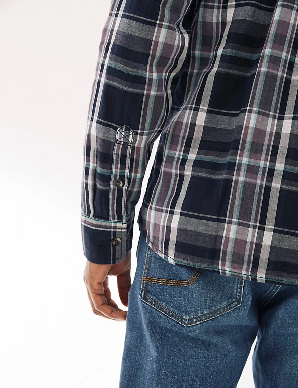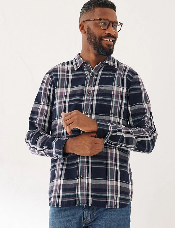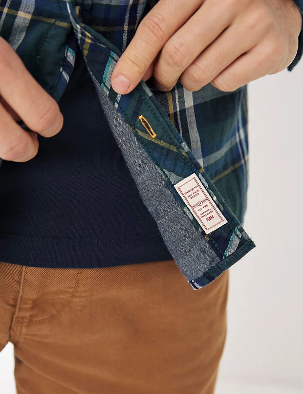 With its pure cotton fabric and classic check print, this FatFace shirt will become a go-to piece. It’s designed in an effortless regular fit, with warm long sleeves and a smart collar. Extra detail, like the patch pocket and tortoiseshell buttons, give this style a smart-casual feel. It has an easy-to-iron finish too, meaning a quick press is all that’s needed before you head out the door.