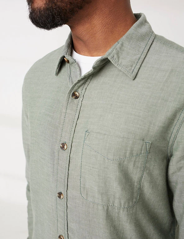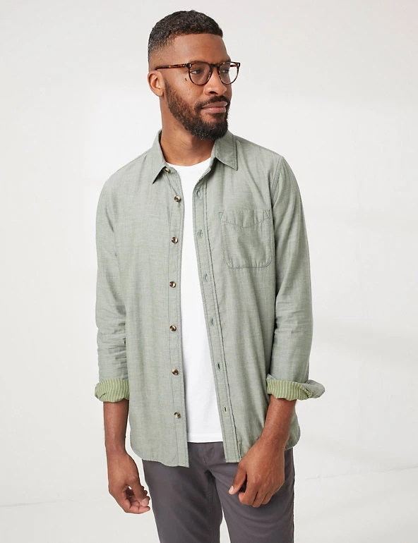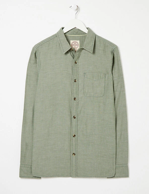 This pure cotton FatFace shirt is an effortless way to do smart-casual style. It’s crafted in a comfortable regular fit and has a classic collar and long sleeves. Tortoiseshell button fastenings add a premium touch. An easy-to-iron finish means all this shirt needs is a quick press before you head out.