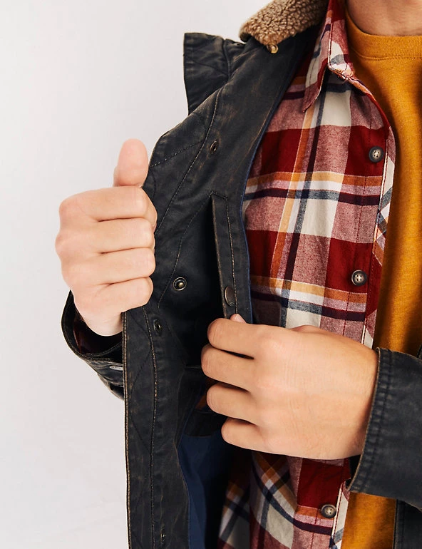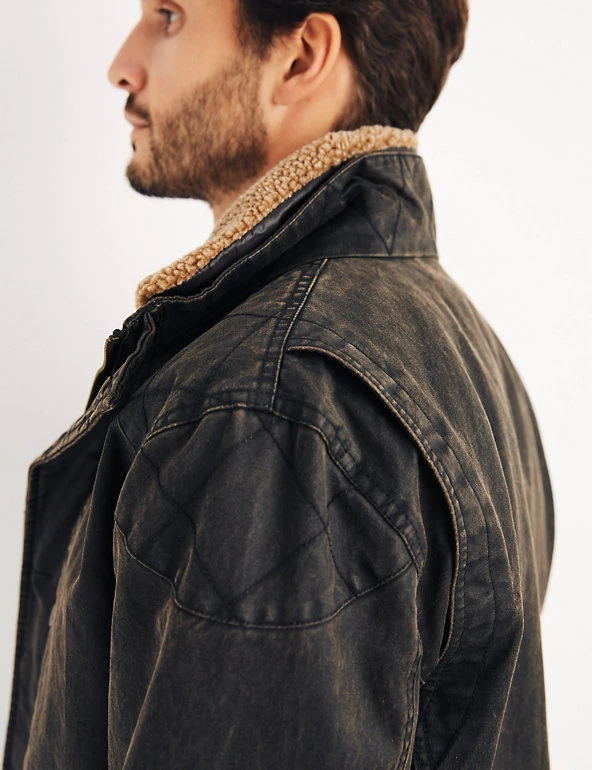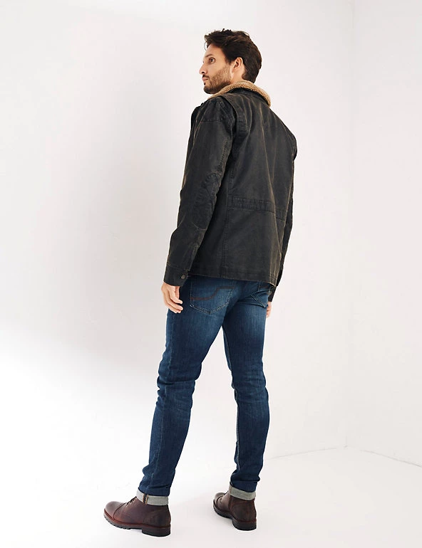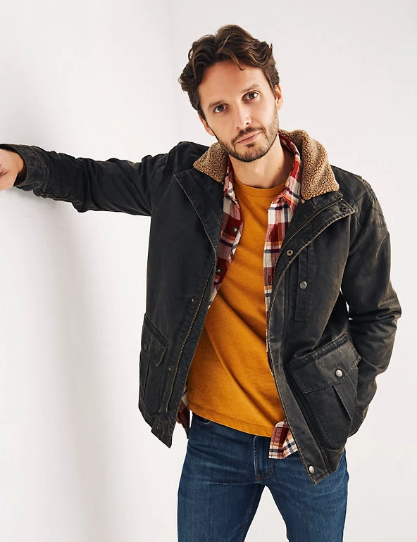 This cotton-rich utility jacket from FatFace has real throw-on-and-go appeal. It’s designed in a regular fit for comfort, with a lined collared neck for extra warmth. Popper and zip fastenings provide a snug finish, while patch pockets and quilted shoulders add extra detail. Made with cotton.