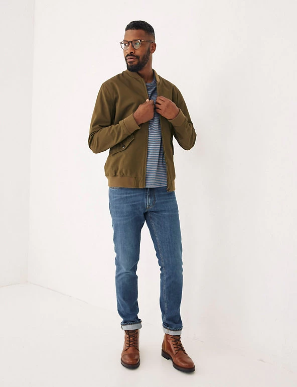 This pure cotton bomber jacket from FatFace puts a minimalist twist on outerwear. It’s cut to a regular fit, with a classic baseball neck and ribbed trims to keep you snug. Two popper-fastening pockets feature on the front for your daily essentials. This piece fastens with a zip.
