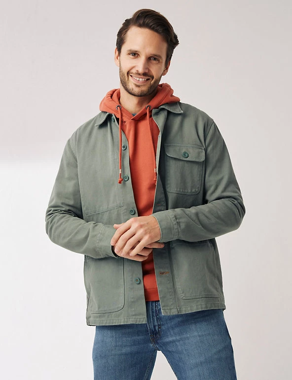 This pure cotton jacket by FatFace has an authentic, workwear-inspired vibe. It’s cut to a regular fit, with a smart collared neck and classic button fastening. Two patch pockets feature at the front, plus a flap chest, to keep your essentials close.