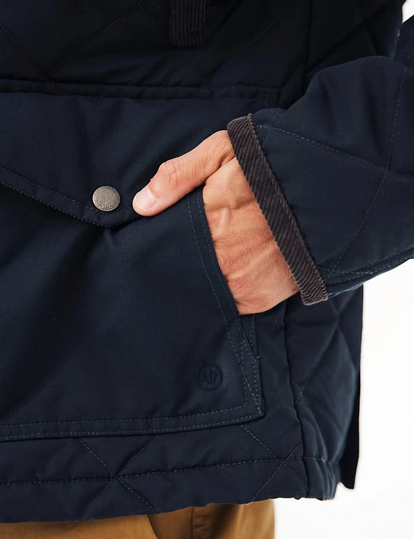 From grocery runs to weekend catch-ups, this FatFace utility jacket has you covered. Designed in a regular fit for comfort, this quilted, lightly padded style also features a warm collared neck and double popper and zip fastenings. A contrast cord trim along the welt pockets adds extra texture, while front patch pockets provide enough space to store your belongings.