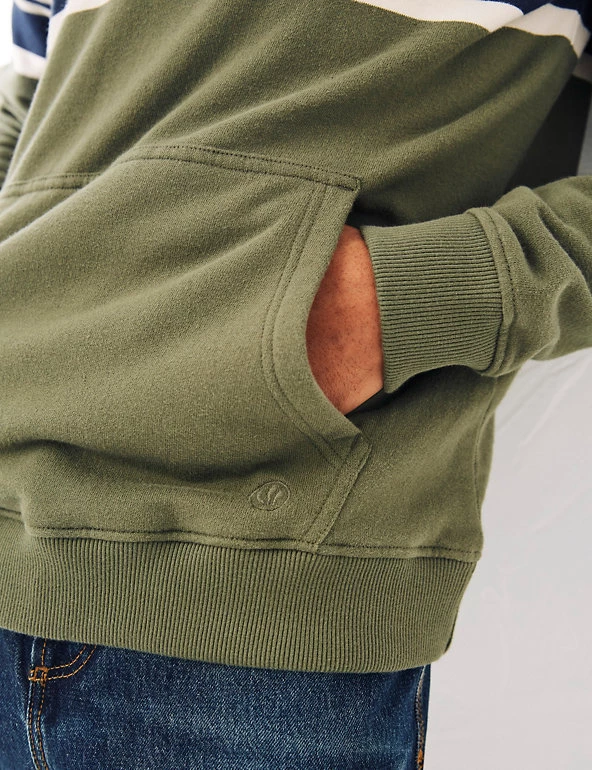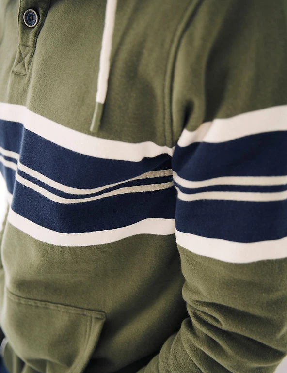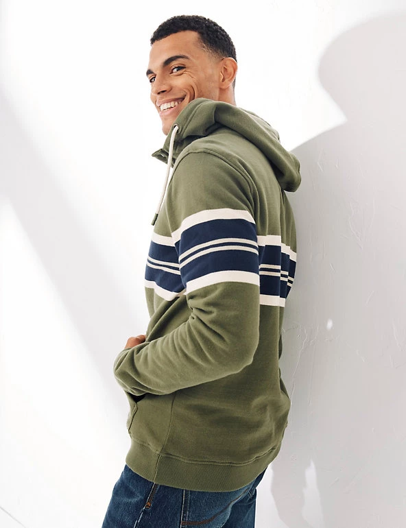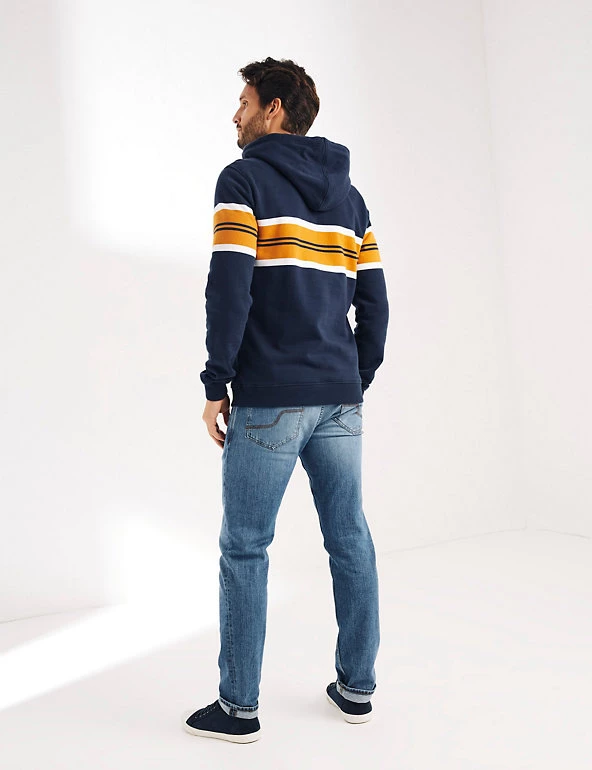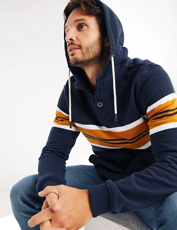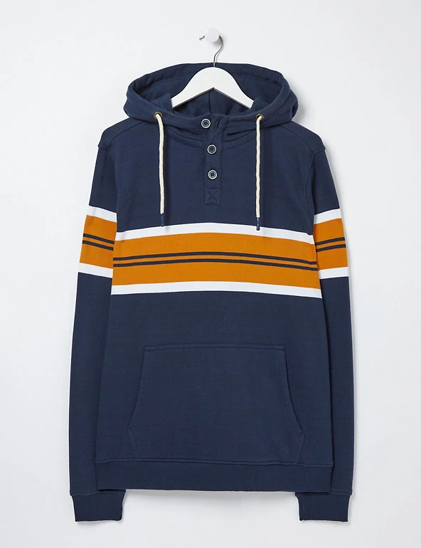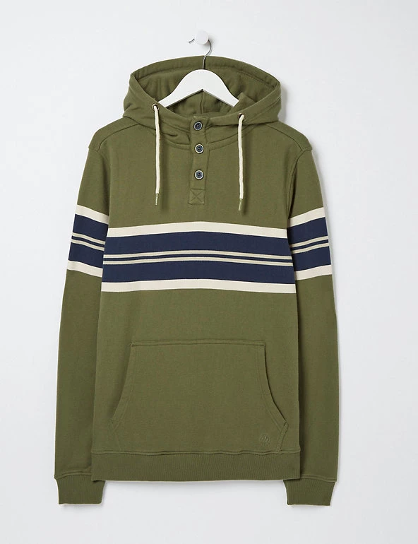 This pure cotton hoodie from FatFace is an effortless piece for relaxed days. It’s designed in an easy regular fit, with a warm hooded neck and snug ribbed trims. Button fastenings and a contrast stripe across the chest add extra detail to this comfortable, off-duty style.