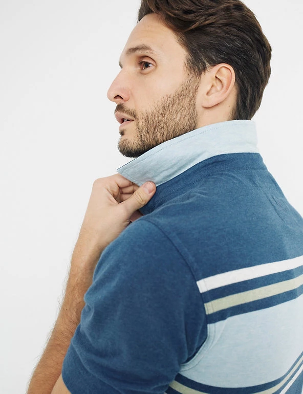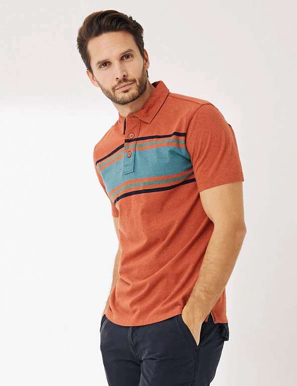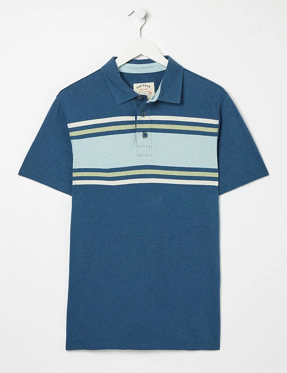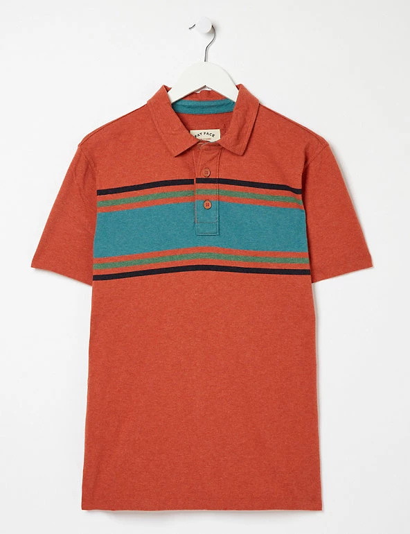 Follow the colour-block trend by throwing on this striped polo shirt by FatFace. Designed in a regular fit, this weekend favourite features a classic polo collar and short sleeves. It has a smart three-button placket and is made from breathable pure cotton fabric.