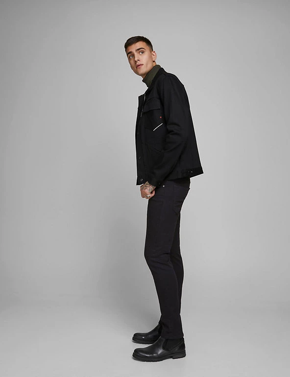 These classic jeans from JACK & JONES are cut slim through the thigh and knee, with a low rise and a tight leg opening. The Glenn Original AM 816 style is made in an authentic five-pocket design. The denim is crafted from a blend including organic cotton, with added stretch for comfort.