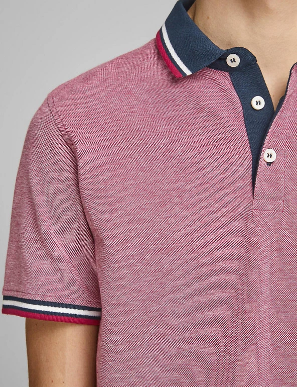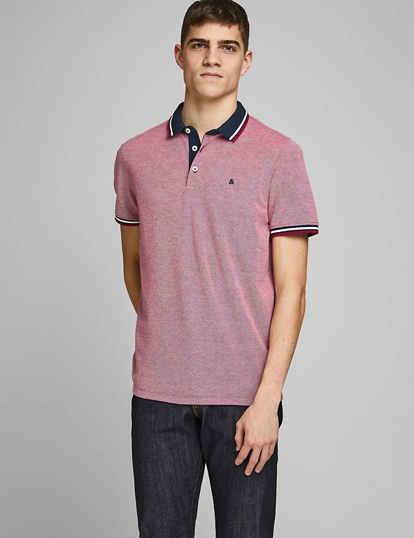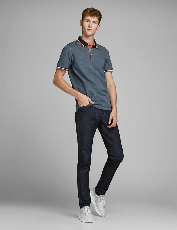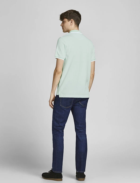 Crafted from cool and comfortable cotton, this JACK & JONES polo shirt nails laidback style. It’s designed in a close-fitting slim cut with a textured button-through collar. Tipped edges on the collar and sleeves and an embroidered logo on the chest give bonus style points.