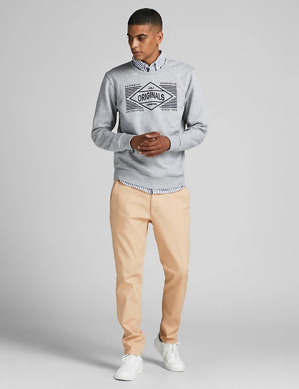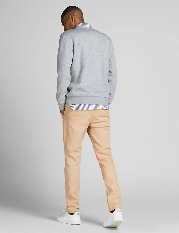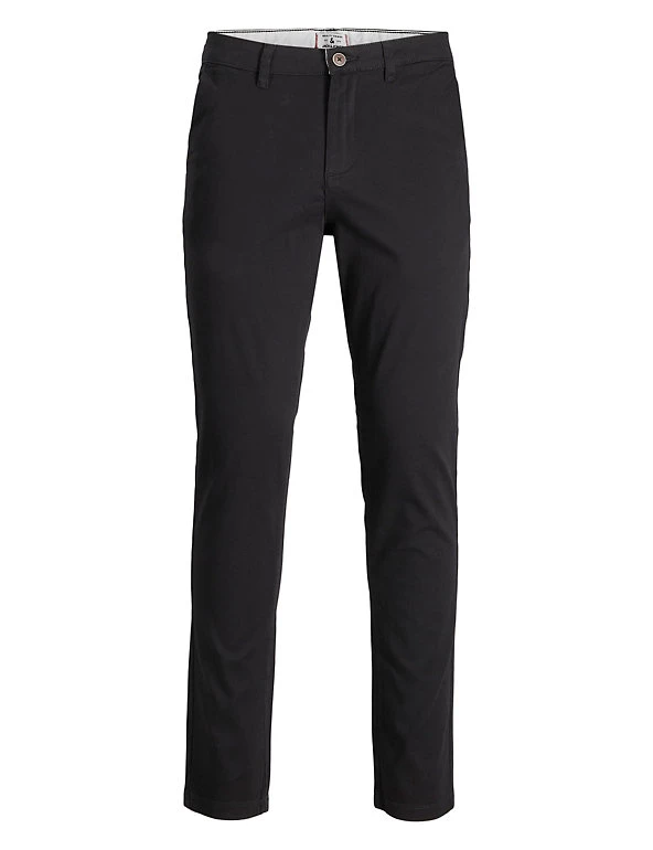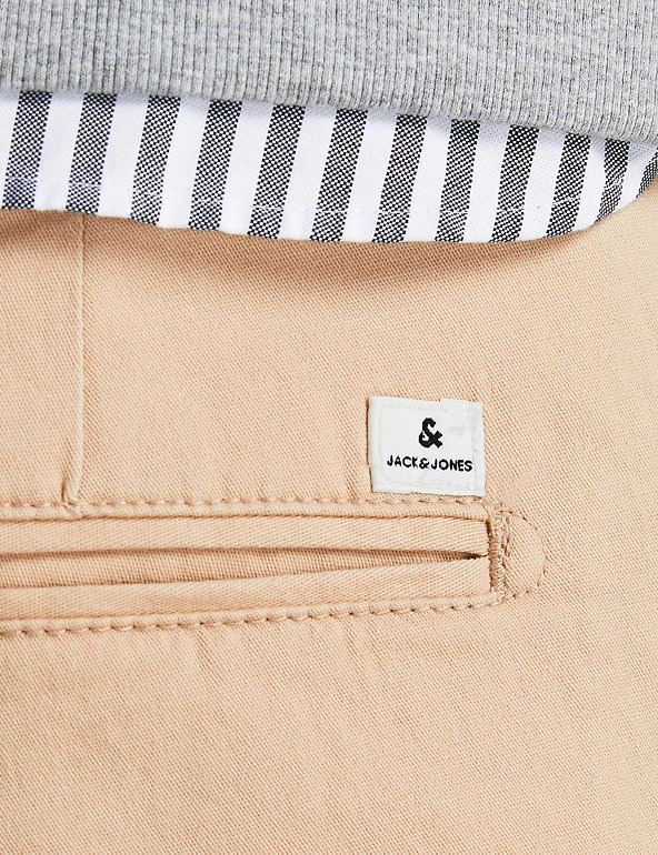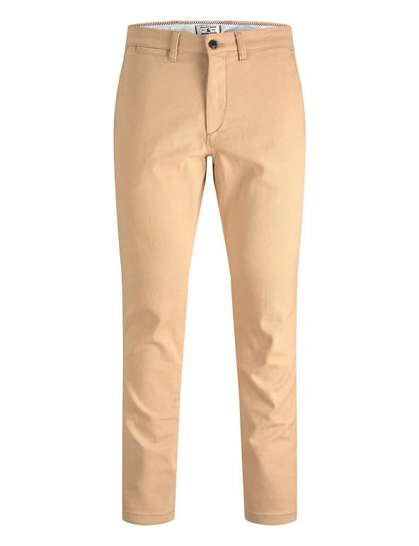 Master smart-casual style with these cotton-rich chinos from JACK & JONES. This versatile pair is cut in a slim fit for a modern silhouette, with handy side pockets and a traditional button and fly fastening.