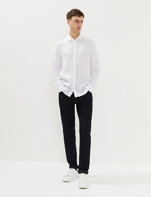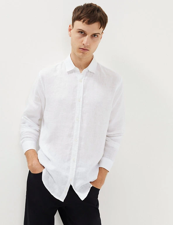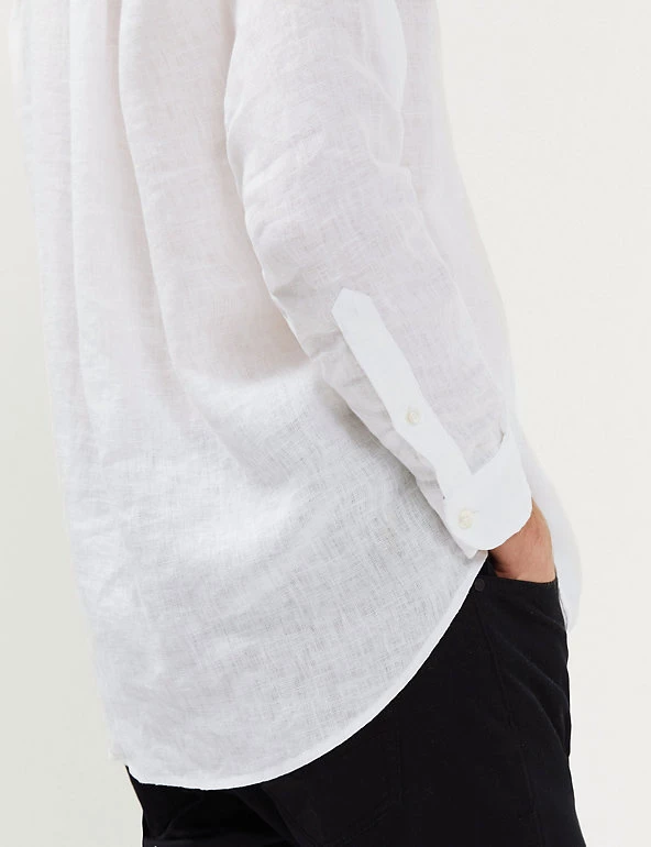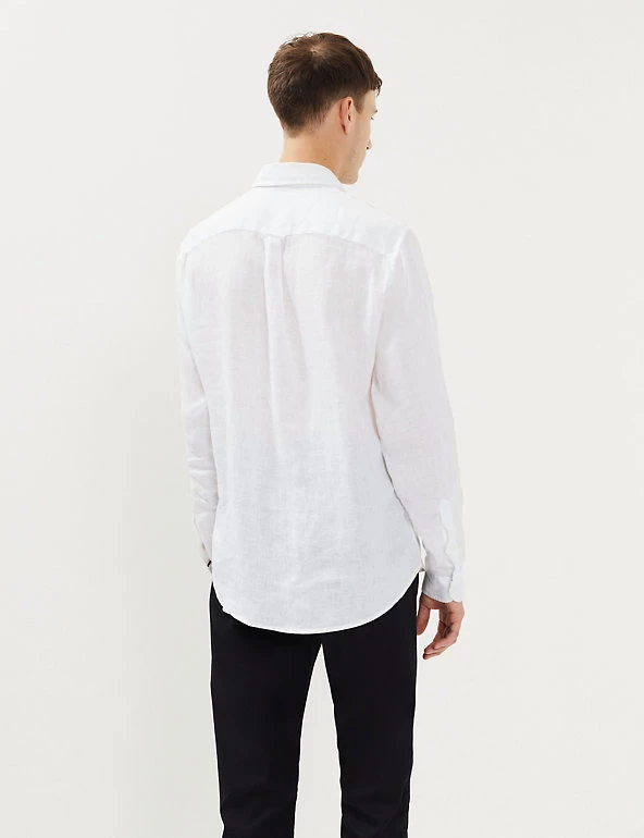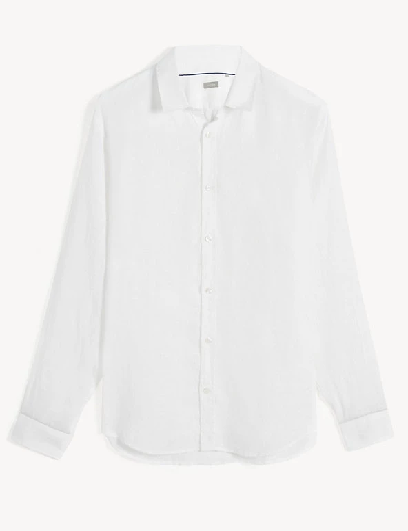 Crafted from breathable pure linen, this classic shirt from Jaeger is ideal for the summer months. It’s cut in a timeless regular fit with a smart collared neck and long sleeves. The lightweight fabric has been laundered for a supersoft feel while contrast internal trims offer extra detail.