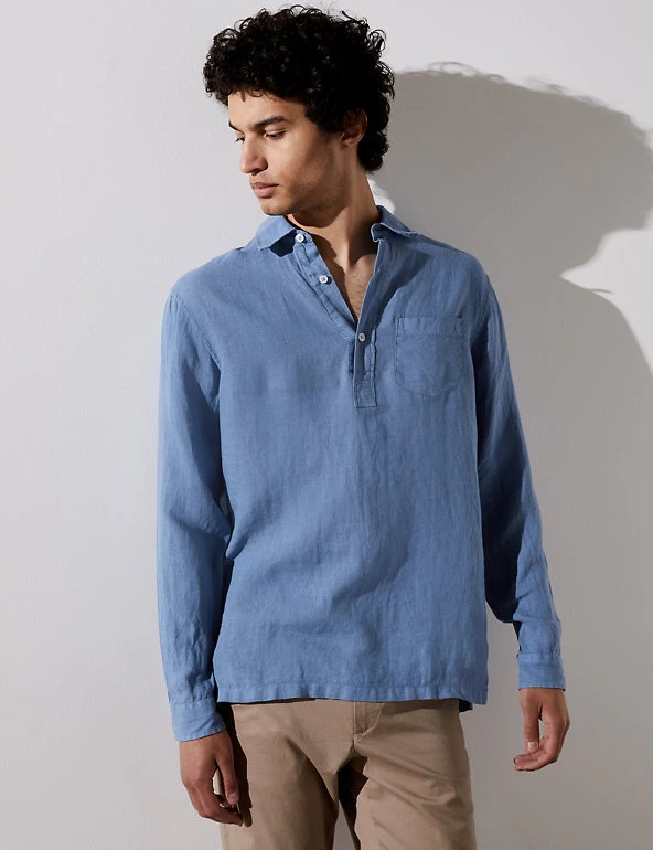 This Jaeger shirt is a relaxed take on tailoring, perfect for the warmer months. It’s designed in a regular fit from pure European linen cloth with a soft hand-feel for all-day comfort. This effortless overhead style features a classic collar and matching patch pocket, plus branded button fastenings. Team this easy-to-wear piece with chino shorts or linen trousers for a smart-casual summer look.
