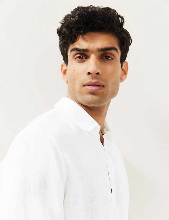 Crafted from breathable pure linen, this overshirt from Jaeger is perfect for laid-back summer days. It’s cut in a roomy regular fit for comfortable all-day wear and comes in an over-the-head design for added ease.