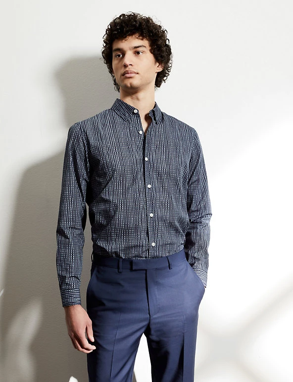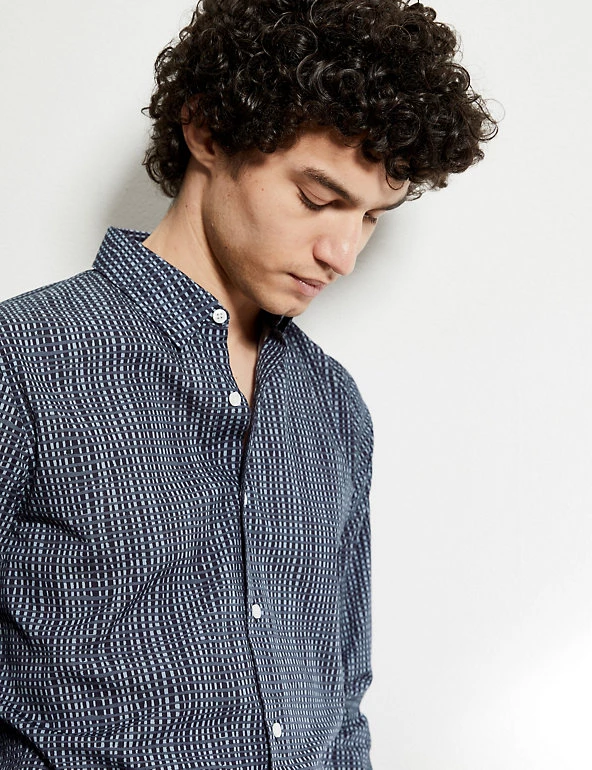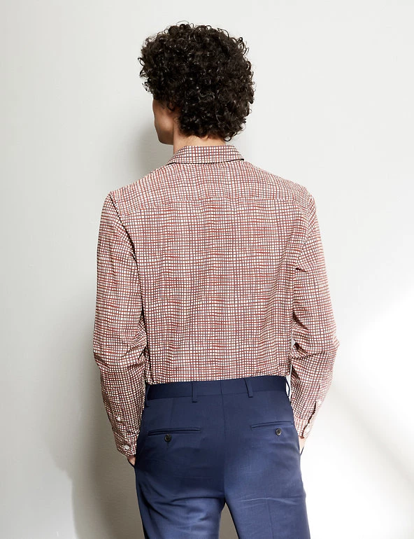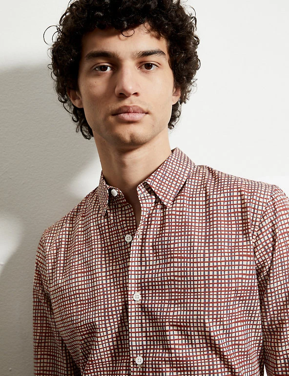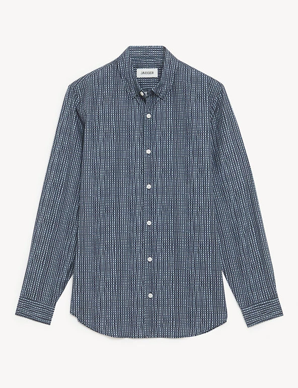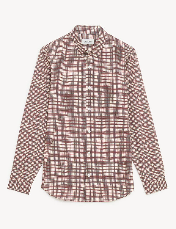 This pure cotton Jaeger shirt is a twist on the classic check style. It’s cut to an easy regular fit and laundered for a soft handfeel. Naturally breathable fabric makes it ideal for warmer weather. The stylish painted print is unique to Jaeger and perfect for both casual holiday looks or evening outfits.