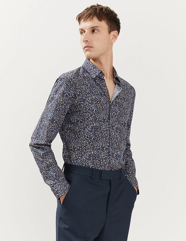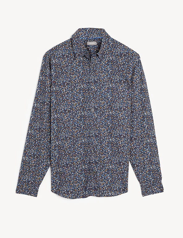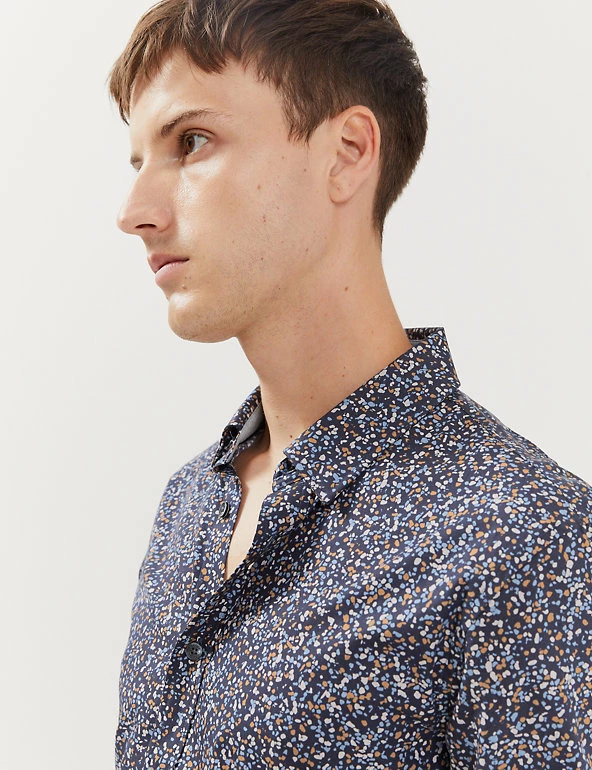 This pure cotton shirt from Jaeger features an exclusive bespoke print that’ll add instant interest to your look. It’s cut in an effortless regular fit, with long sleeves and a smart button-down collar and fastenings. Crafted from European fabric, this cool, comfortable style is perfect for home or away.