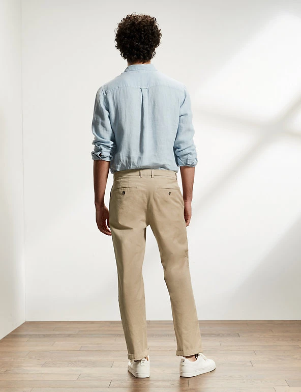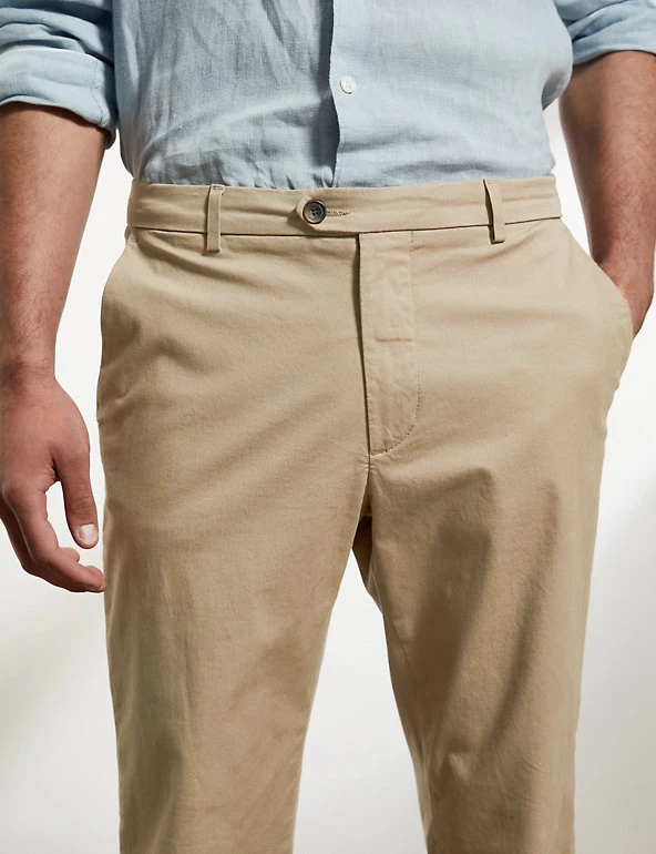 Add a smart everyday essential to your wardrobe with these premium cotton-rich chinos from Jaeger. They’re cut in a regular fit with a button and zip fastening and practical pockets at the waist. These versatile chinos are made with a comfortable stretch twill cloth for effortless and enduring style. Roll up the hem for a more casual look or pair it with your favourite t-shirt or textured knit.
