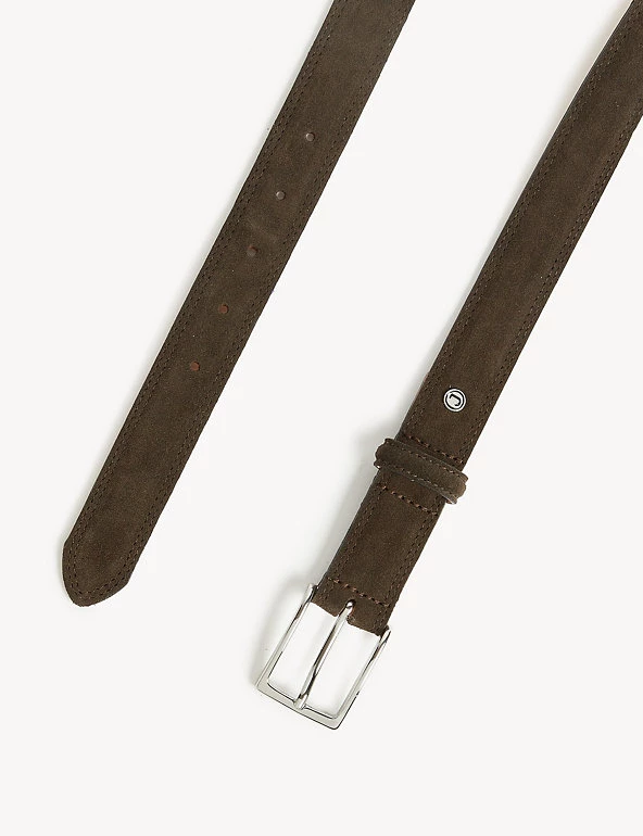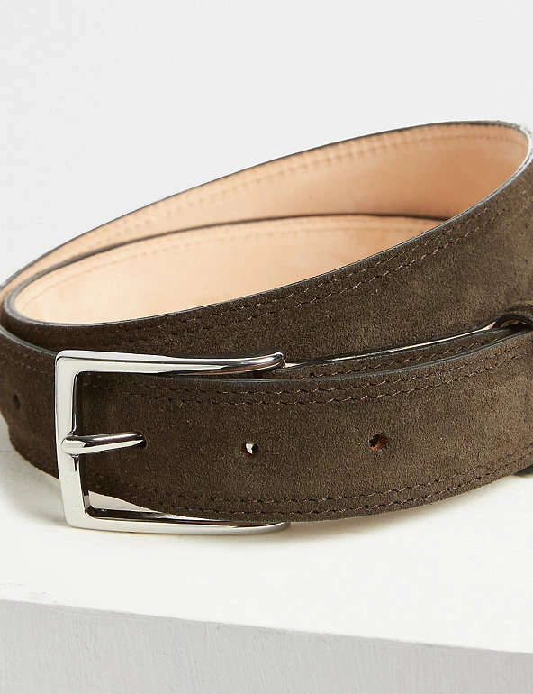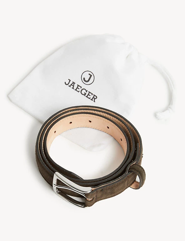 Add a luxury touch to outfits with this belt from Jaeger. The premium piece is made in the UK from beautiful suede leather. It features a silver-tone square buckle and is complete with signature ‘J’ stud branding.