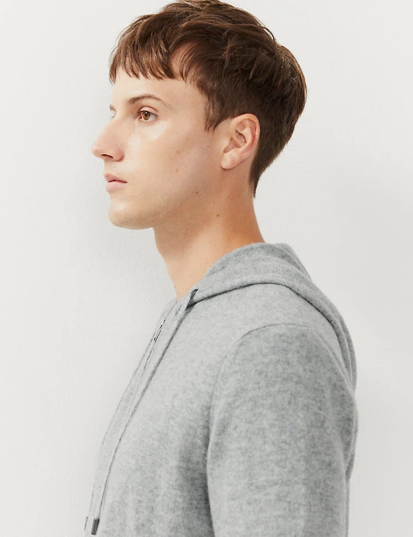 This comfortable, wool-rich Jaeger hoodie combines the durability of wool with the softness of cashmere. It’s cut to a regular fit, with an adjustable hooded neck and long sleeves. This piece fastens with a contrasting zip and features two side pockets for storing day-to-day essentials.