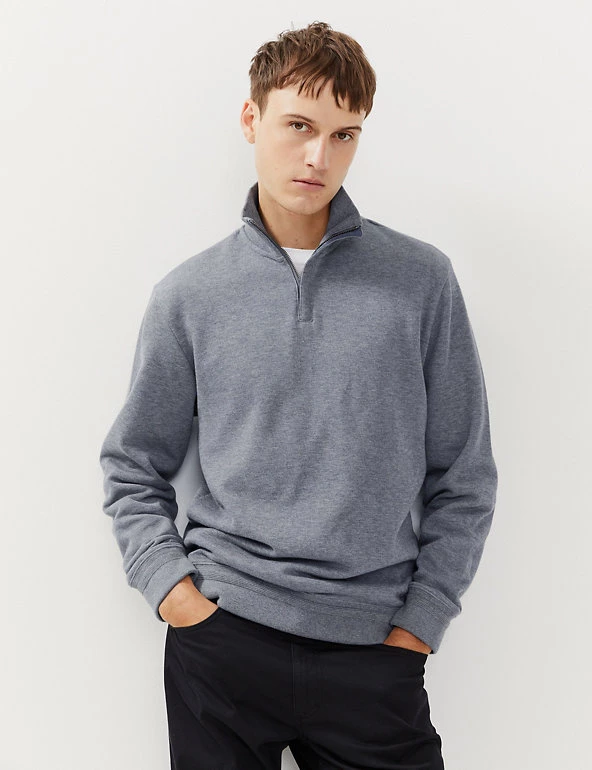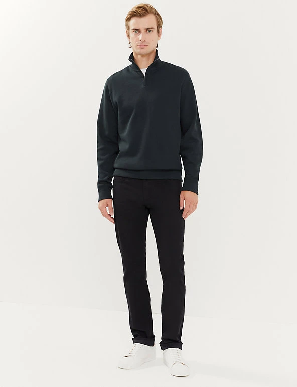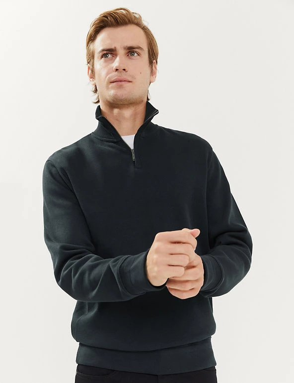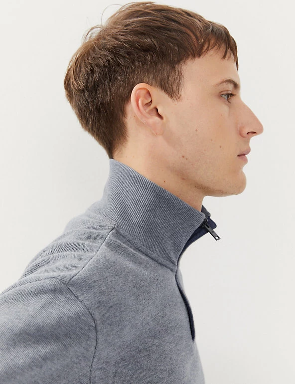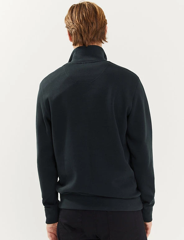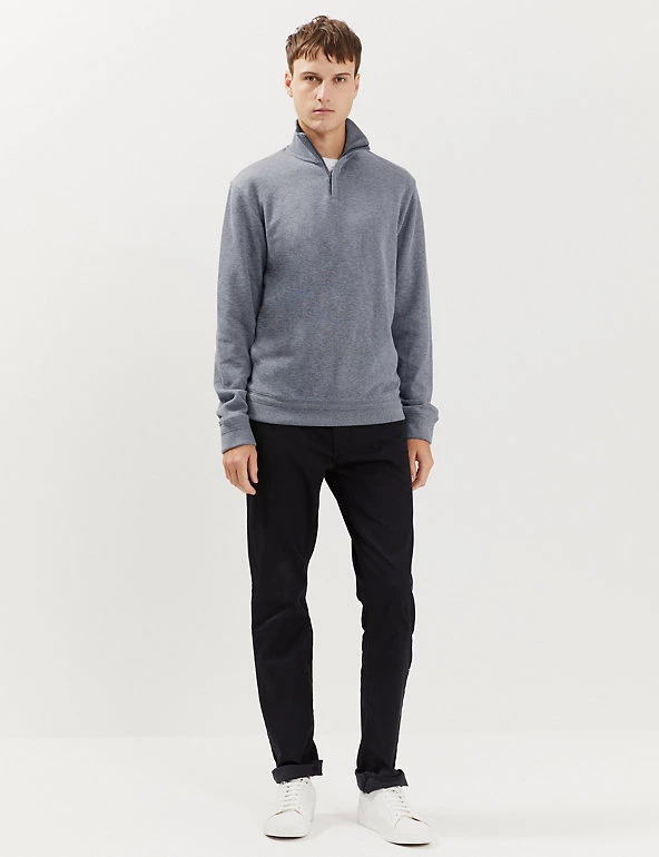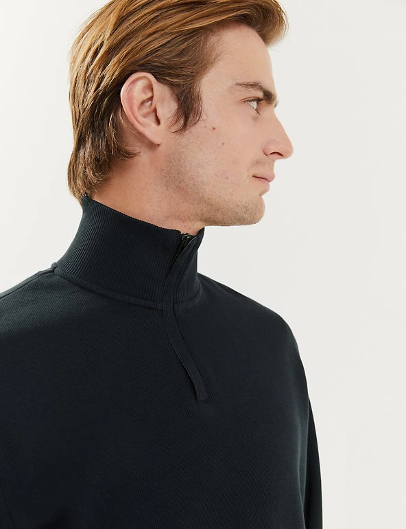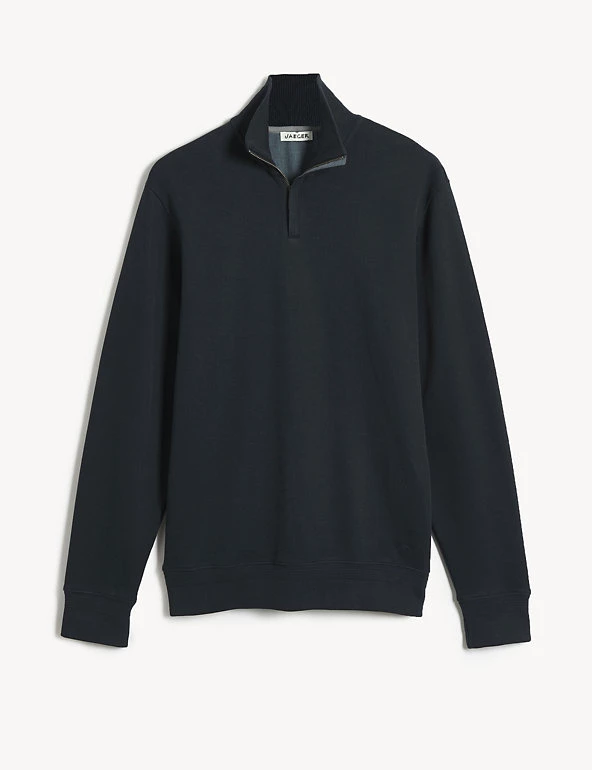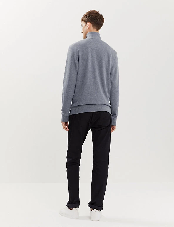 Add effortless layers to everyday looks with this pure cotton jumper from Jaeger. This comfortable piece is cut in a regular fit, from a jersey fabric that feels soft against the skin. The causal half zip funnel neck is elevated with premium touches, from embroidered detailing to contrast internal trims.