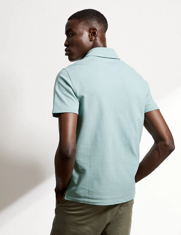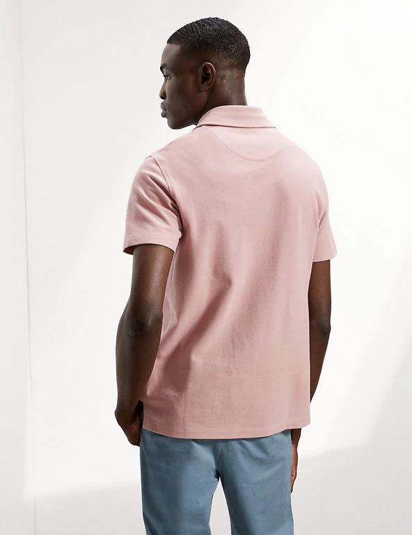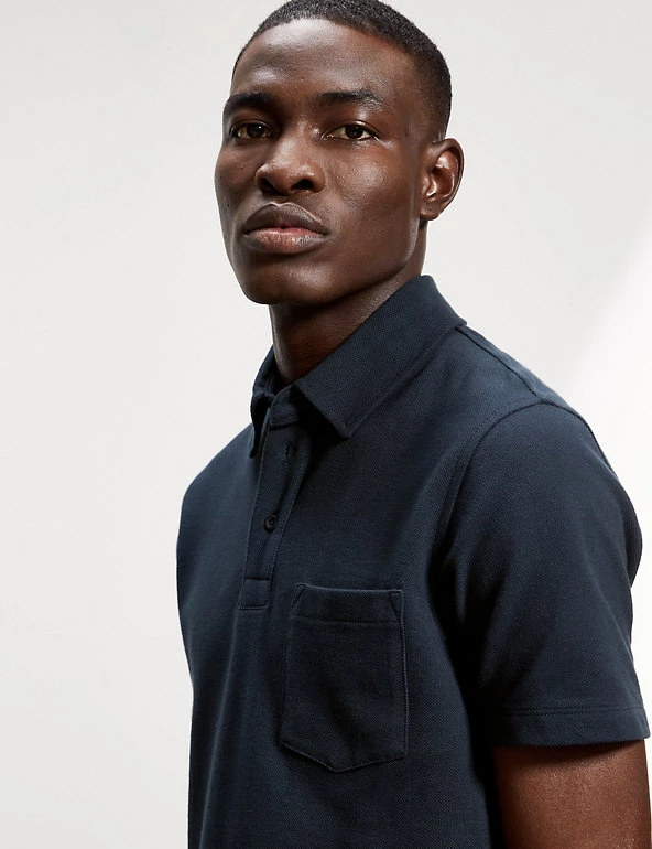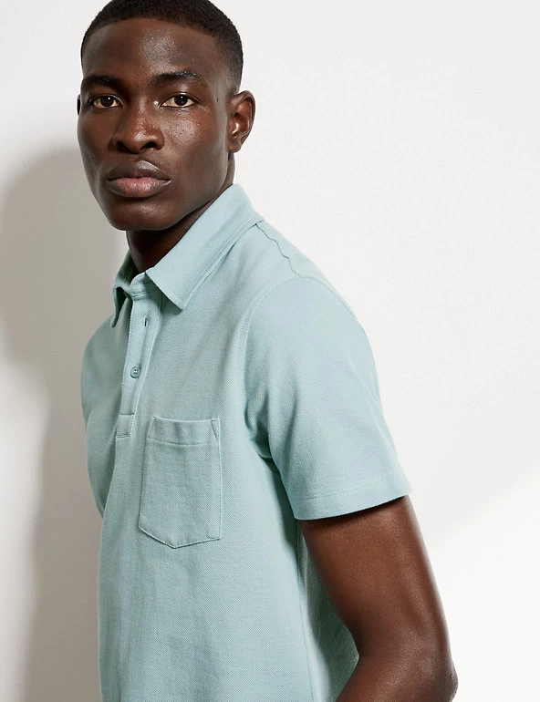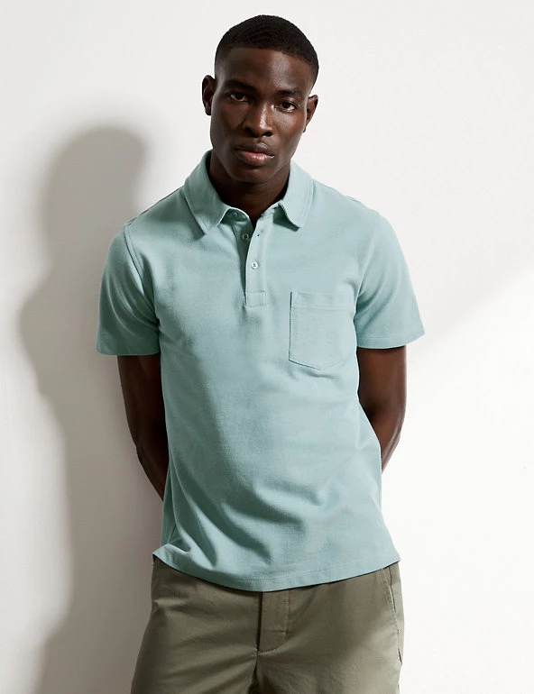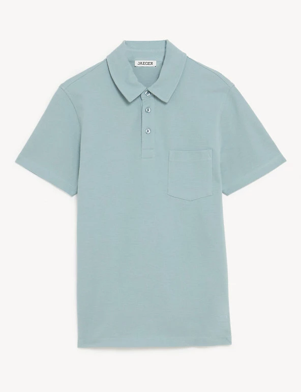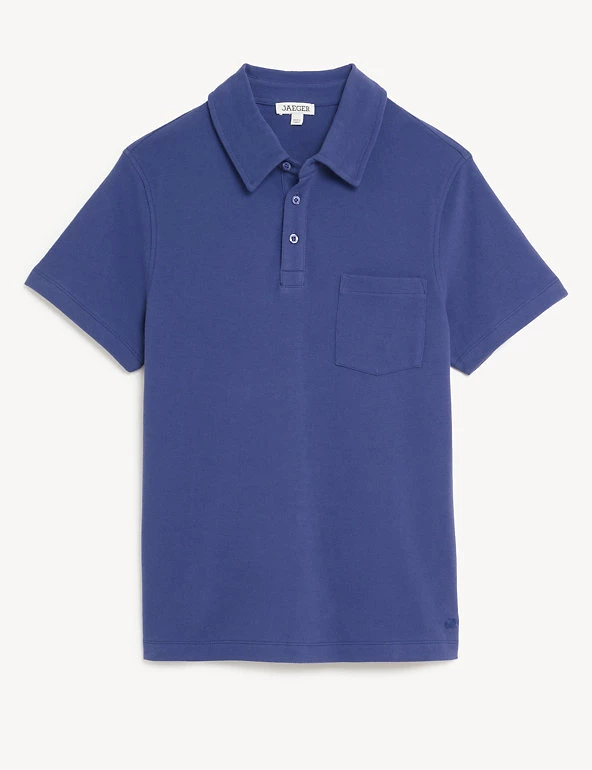 Embrace effortless style with this pure cotton polo shirt from Jaeger. This regular-fit design is cut from a laundered jersey pique fabric, with a super-soft, textured hand-feel. It features a classic button-down collar and cool short sleeves, plus a matching patch pocket on the chest. This versatile piece looks great with shorts on sunny off-duty days or layered with a lightweight jacket and trousers for work.