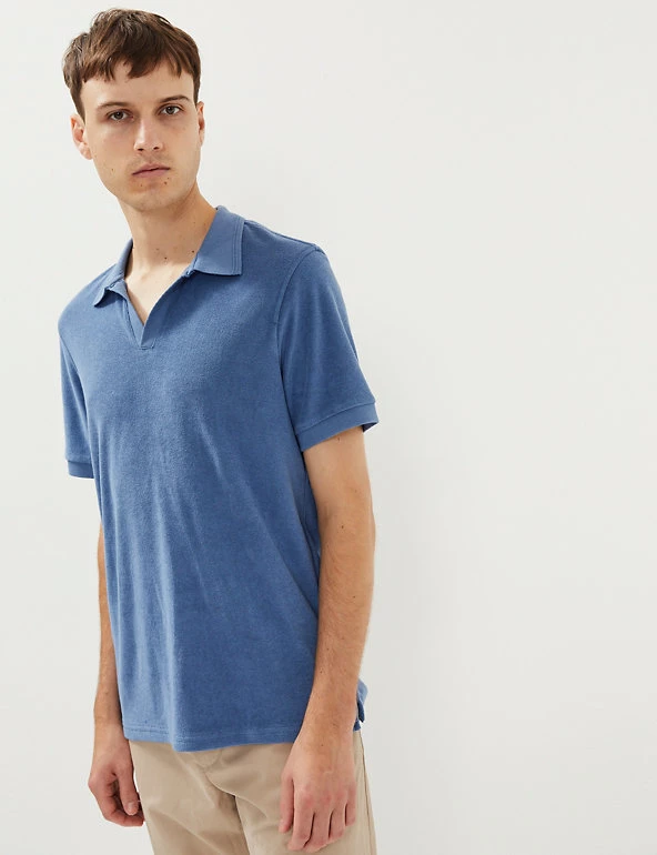 Add an on-trend touch to smart-casual outfits with this Jaeger polo shirt. This summer-ready design is cut in a classic regular fit and features an open-collared neck. It’s crafted from pure cotton terry towelling fabric for a super-soft handfeel and has a textured collar, cuffs and hem for an ultra-stylish finish.