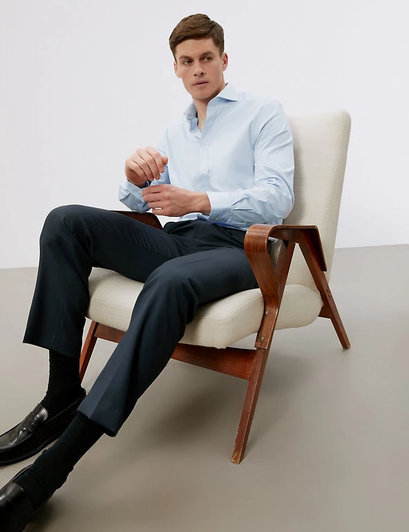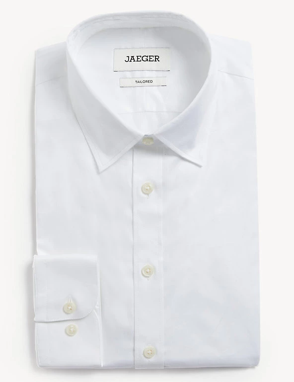 For contemporary tailoring, look no further than this pure Egyptian cotton shirt from Jaeger. Cut in a tailored fit for a clean silhouette, it’s woven from a luxury two-ply 70’s yarn for a smoother, silkier hand-feel that is also more durable and easier to iron. Premium details include twin stitching on the armhole and side seams for added durability, and Jaeger-branded cuff extender buttons to accommodate your watch. The angled cutaway collar adds a modern twist, and comes with removable collar stays to keep your shirt looking its best.