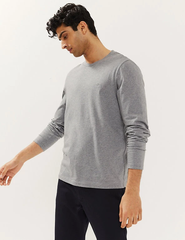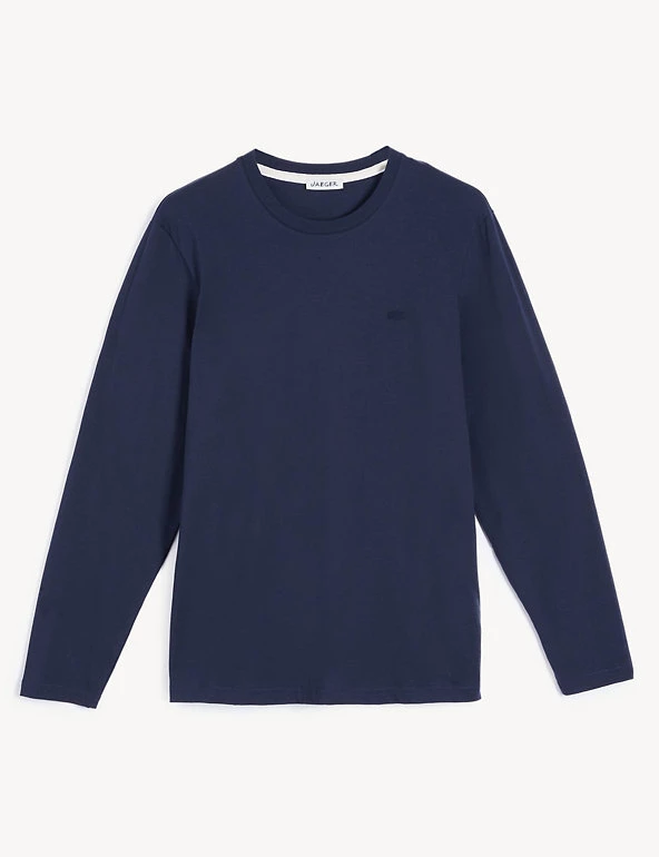 Feel cool and comfortable in this pure cotton t-shirt from Jaeger. It’s cut to a regular fit with a classic crew neck and long sleeves. The soft and breathable fabric makes it the perfect layering piece.
