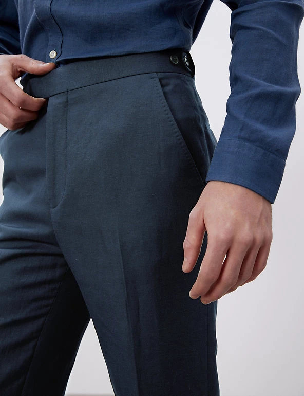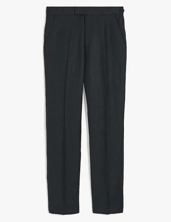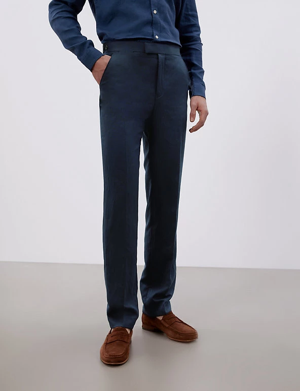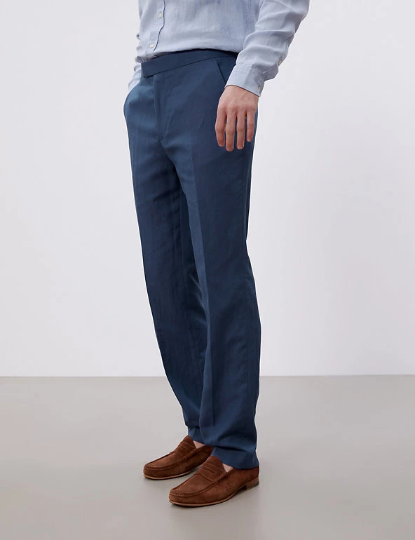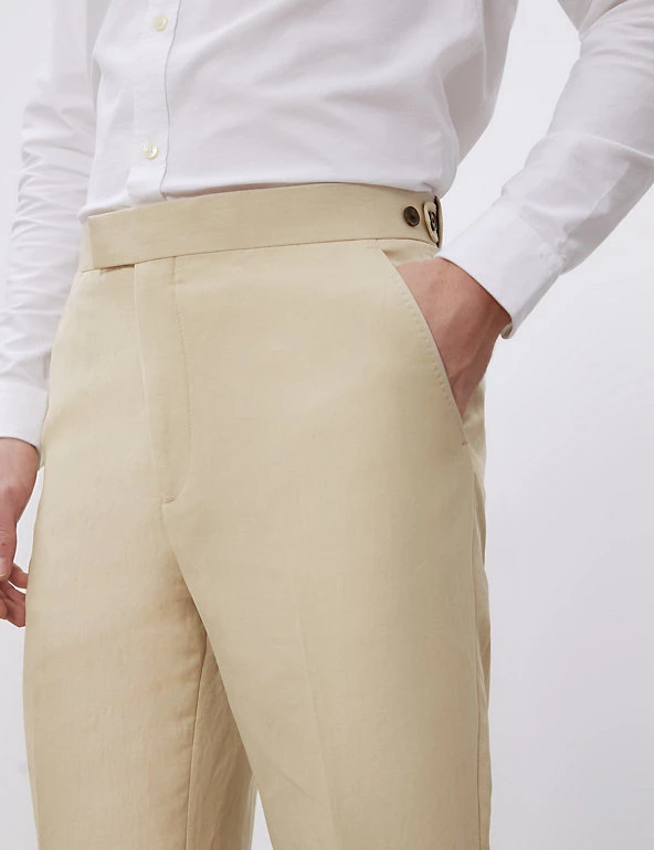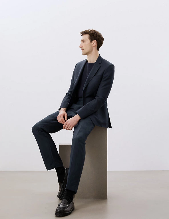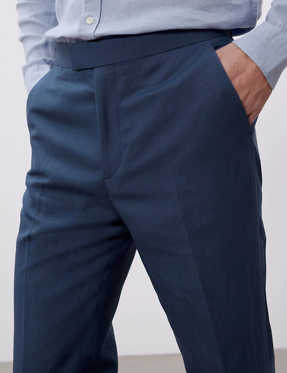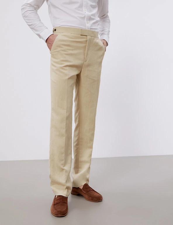 Crafted from a luxurious silk and linen blend, these trousers by Jaeger offer easy elegance. They’re cut in a tailored fit (previously known as regular fit) for comfortable all-day wear, with two practical pockets for your essentials. The hook and bar fastening is concealed for a clean finish, with tortoiseshell button detailing on either side of the waistband for a unique touch.