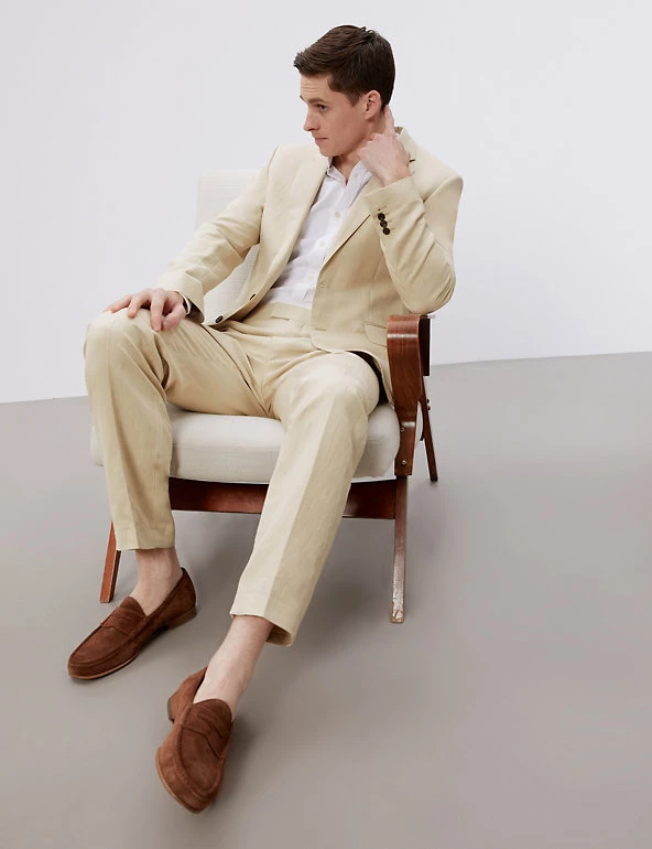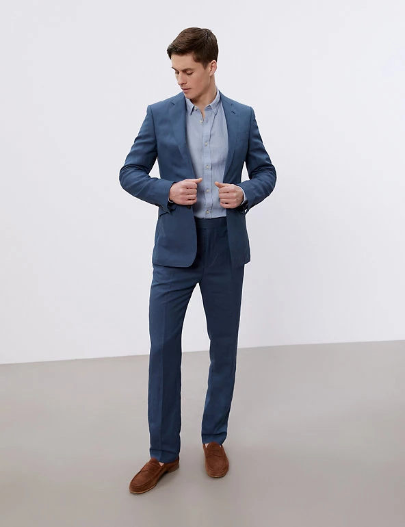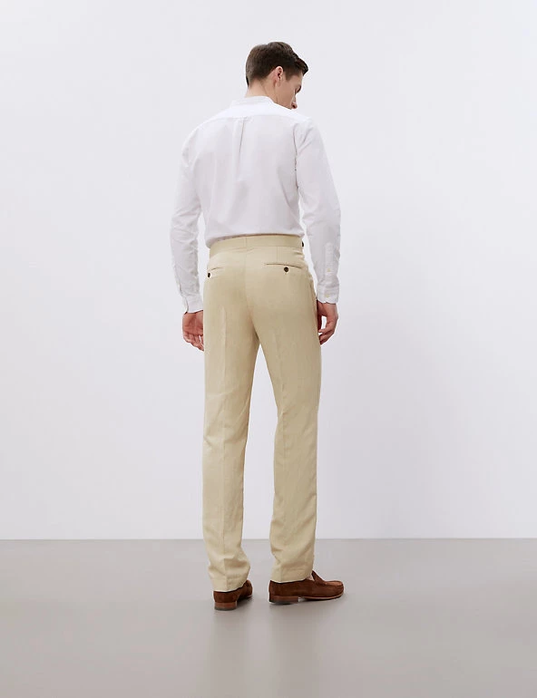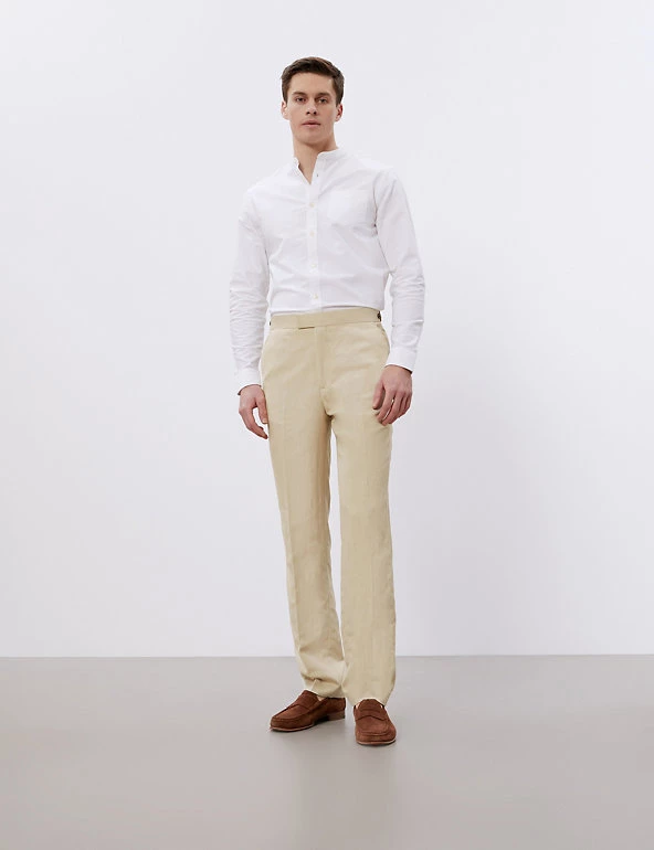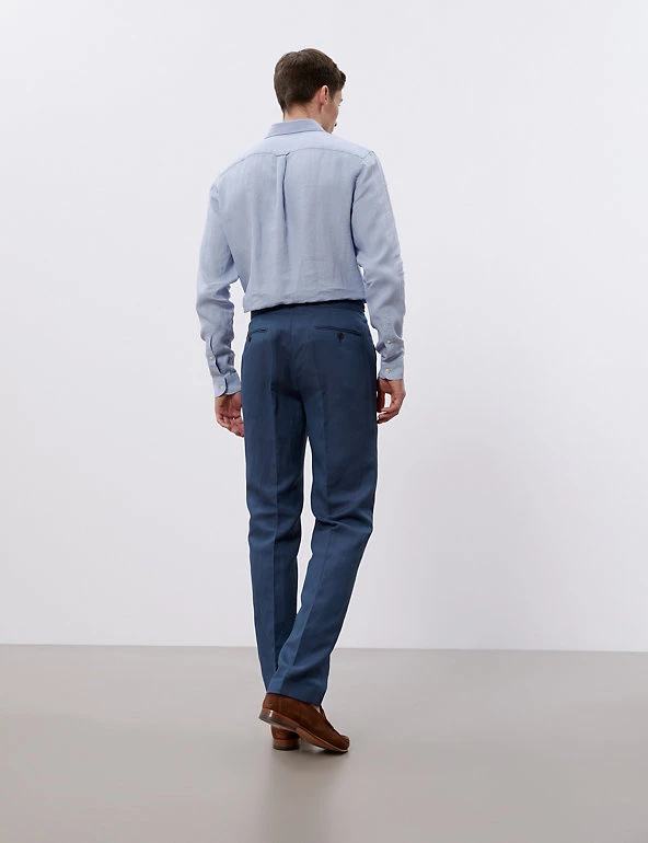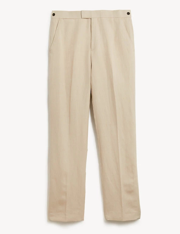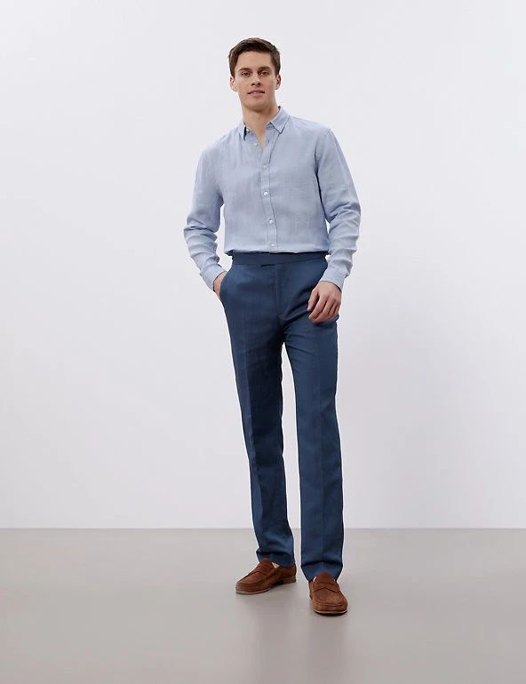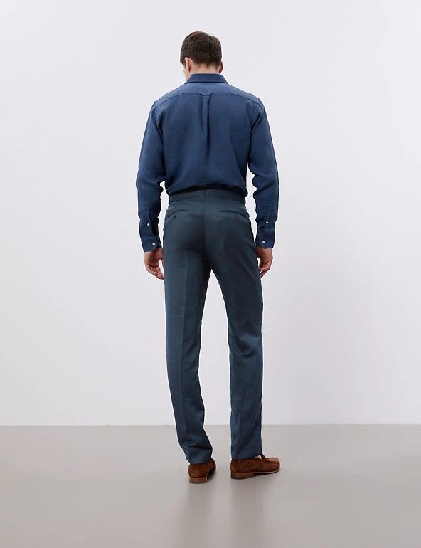 Crafted from a luxurious silk and linen blend, these trousers by Jaeger offer easy elegance. They’re cut in a tailored fit (previously known as regular fit) for comfortable all-day wear, with two practical pockets for your essentials. The hook and bar fastening is concealed for a clean finish, with tortoiseshell button detailing on either side of the waistband for a unique touch.