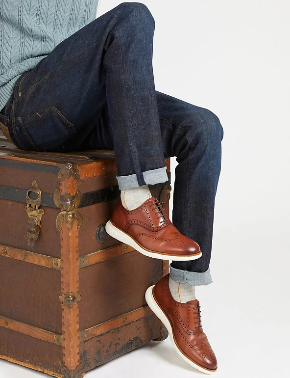 With their elevated sole, these leather brogues from Jones Bootmaker put a contemporary twist on a timeless design. They feature classic broguing detail and neat lace-up fastening. Leather interiors and a stylish round toe make these shoes as comfortable as they are handsome.