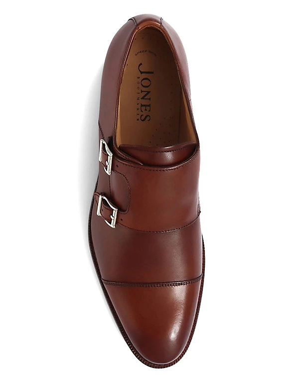 These sophisticated leather double monk strap shoes from Jones Bootmaker will make a great addition to your formal footwear collection. The clean design features two silver buckle fastenings and block heels.