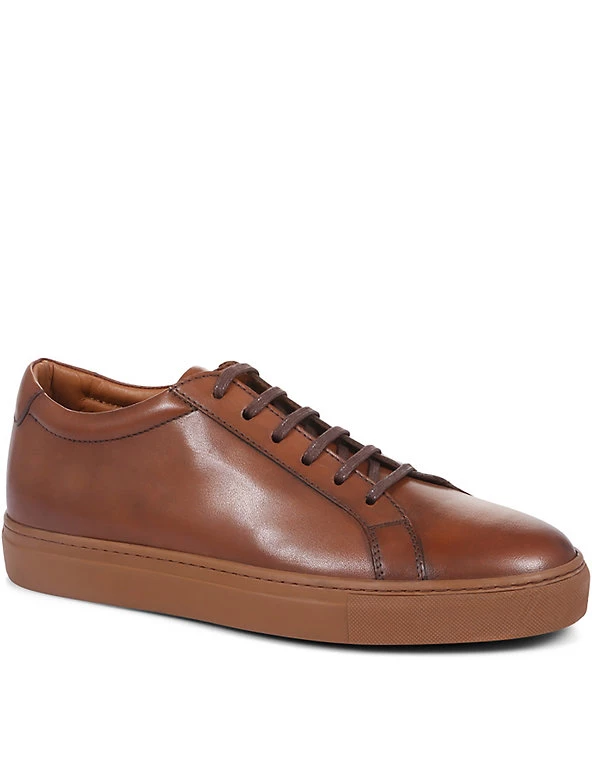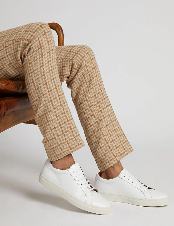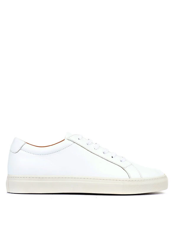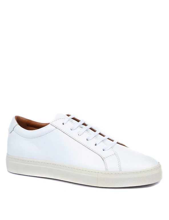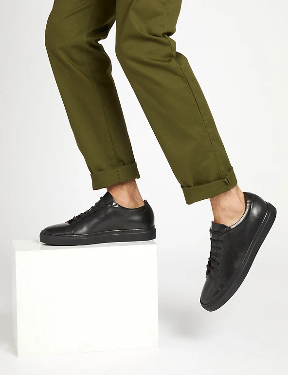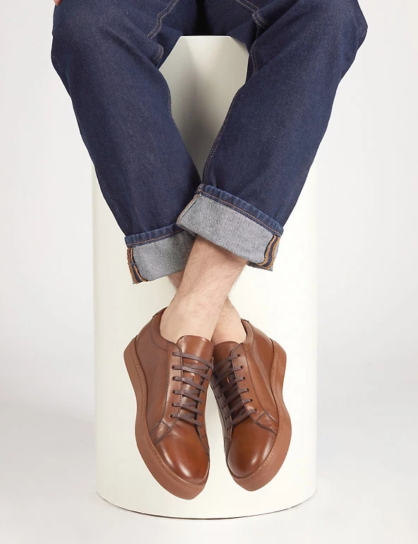 Master smart-casual style with these leather trainers from Jones Bootmaker. They’re designed in a regular fit for comfort, with a round toe and matching lace-up fastenings. This pared-back pair will make a versatile addition to your wardrobe.