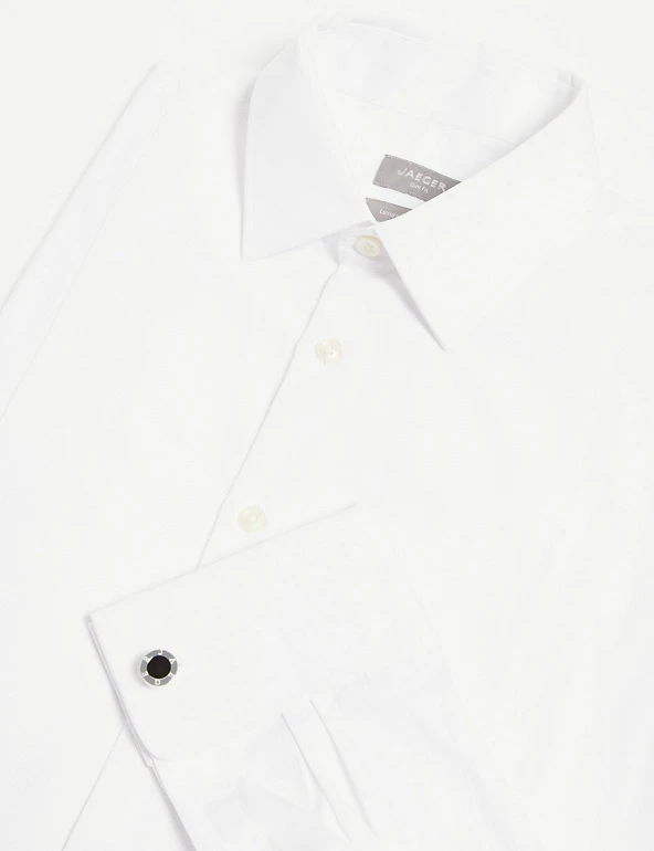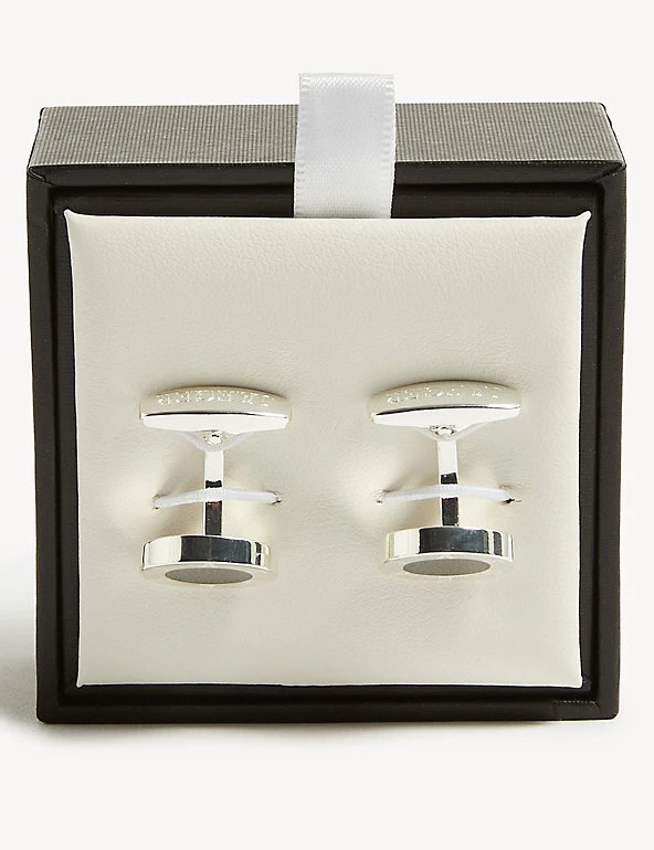 Cut a dash with these silver-plated stud cufflinks from Jaeger — the finishing touch on your Sunday best. The round-shaped design features a contemporary black centre and subtle branding around the edges.