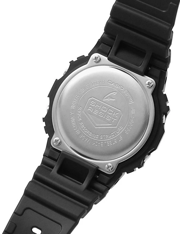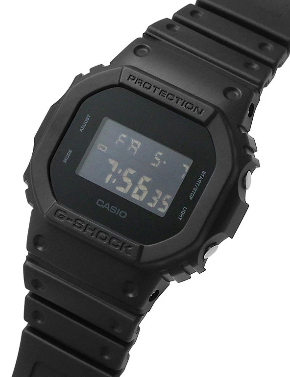 Go for a sporty aesthetic with this G-Shock watch from Casio. This shock-resistant timepiece is crafted from chunky resin for a comfortable fit. It features an adjustable buckle strap and a rectangular dial displaying a digital clock. An LED display flasher and a multi-unctional alarm add practical appeal. The chronograph function enables this design to be used as a stopwatch, which can be operated using the side buttons. This watch is also water-resistant up to a truly impressive 200m, so you can go on weekend adventures without a care in the world.