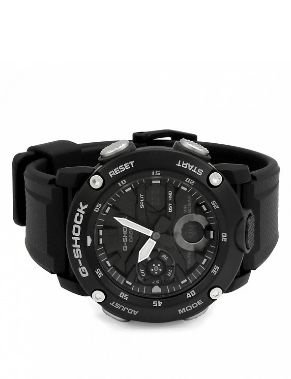 Embrace a retro feel with this combination quartz watch from Casio. This durable rubber design features an impressive 200m water-resistance, vibration resistance and a three-year battery life. It’s set up to make life easier, with a daily alarm and digital calendar display. There are extra functions in the form of a countdown timer and stopwatch, plus a world time dial showing 24 different time zones for wherever you are around the globe.