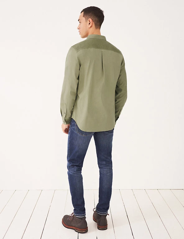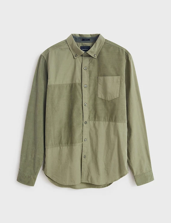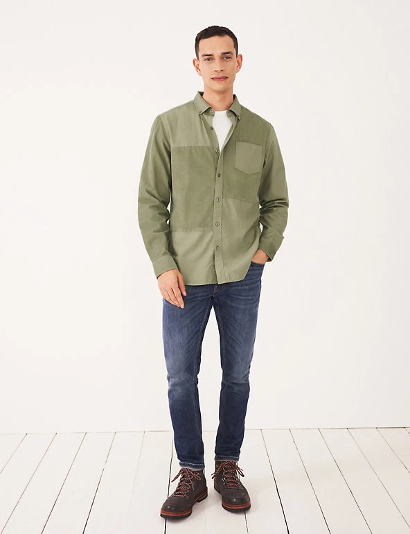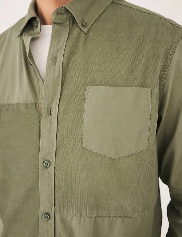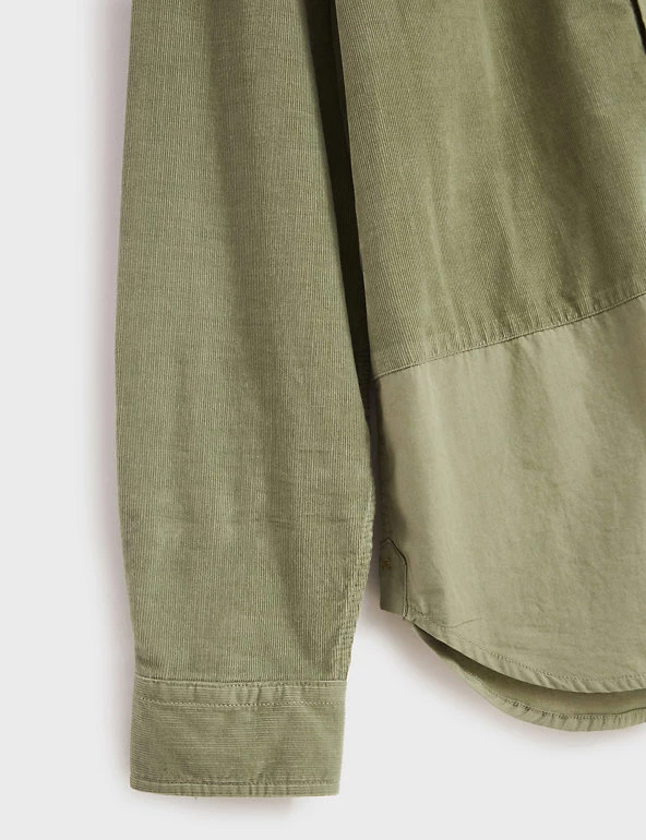 This pure cotton White Stuff shirt is made from a mix of corduroy and smooth panels, for a cool and casual look. Its regular fit ensures an easy wear, and the curved hemline can be worn tucked in or out. The button-down collar and button-through fastening add crisp detail, and a patch pocket on the chest gives a touch of utility style.