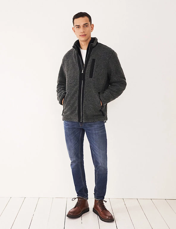 This cosy borg jacket from White Stuff is here to help you brave chilly days in total comfort. It’s made in a regular fit, with a zip-through front and snug funnel neck. Toggles at the hem can be adjusted to keep in the warmth. It’s complete with zipped pockets.