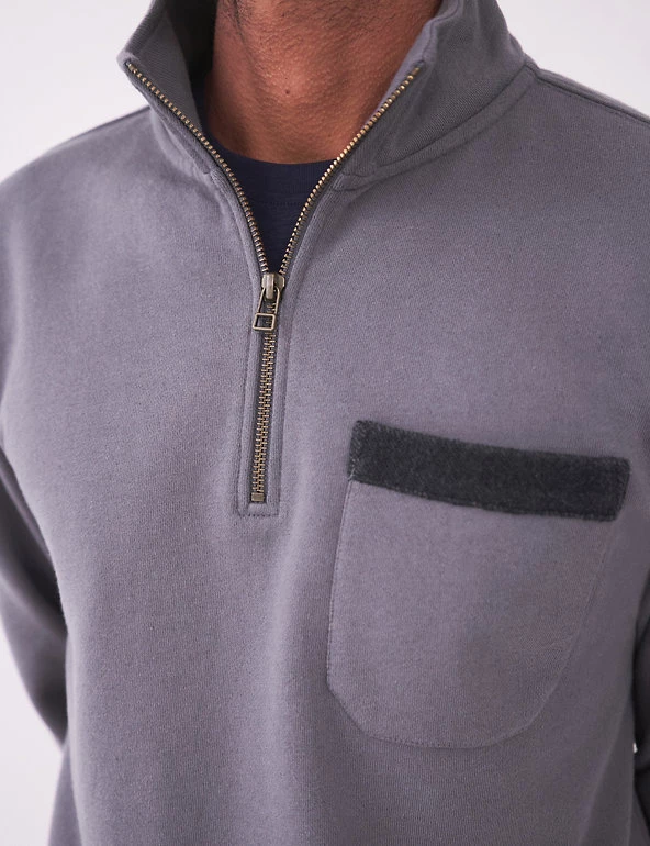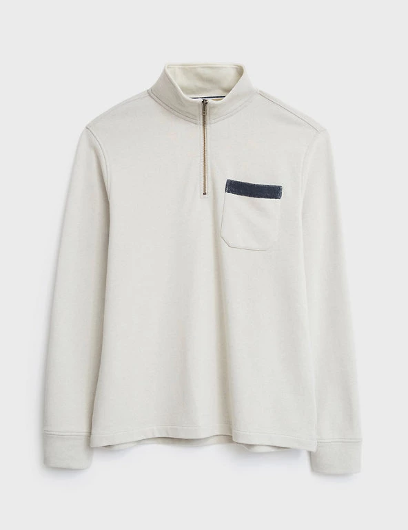 Layer up with this pure cotton sweatshirt from White Stuff. It has a regular fit, with a snug funnel neck and long, cuffed sleeves. Zip fastening makes it easy to throw on, while the tipped chest pocket is perfect for storing your tech.