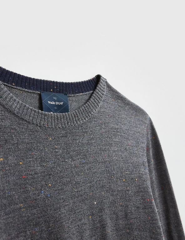 This merino wool-rich jumper from White Stuff features colourful flecks in the fabric for a stylish finish. It’s cut to a comfy regular fit with a classic crew neckline. This piece is complete with a ribbed hem, neckline and cuffs to help lock in warmth.